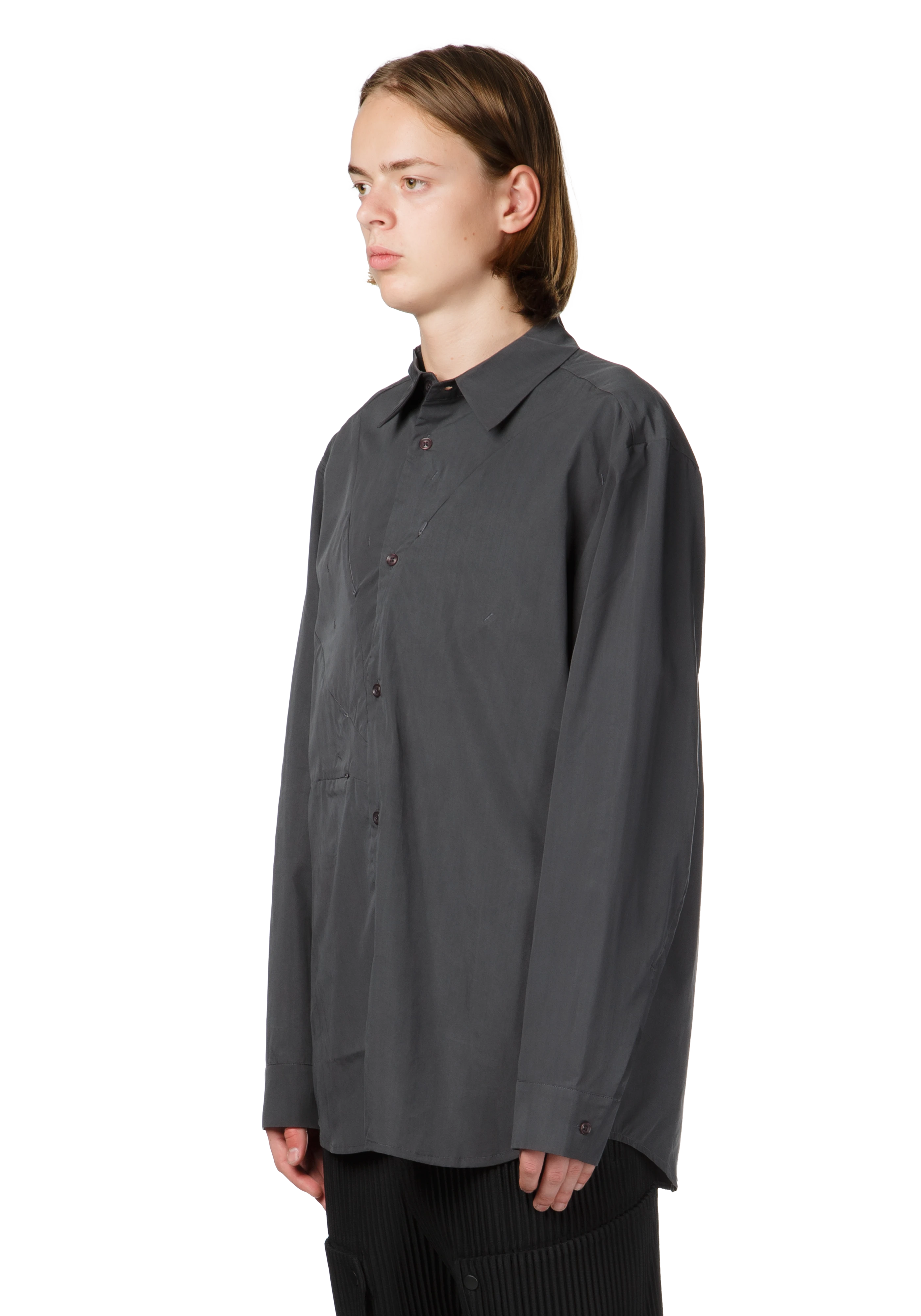 Long-sleeve lyocell-blend shirt in charcoal.