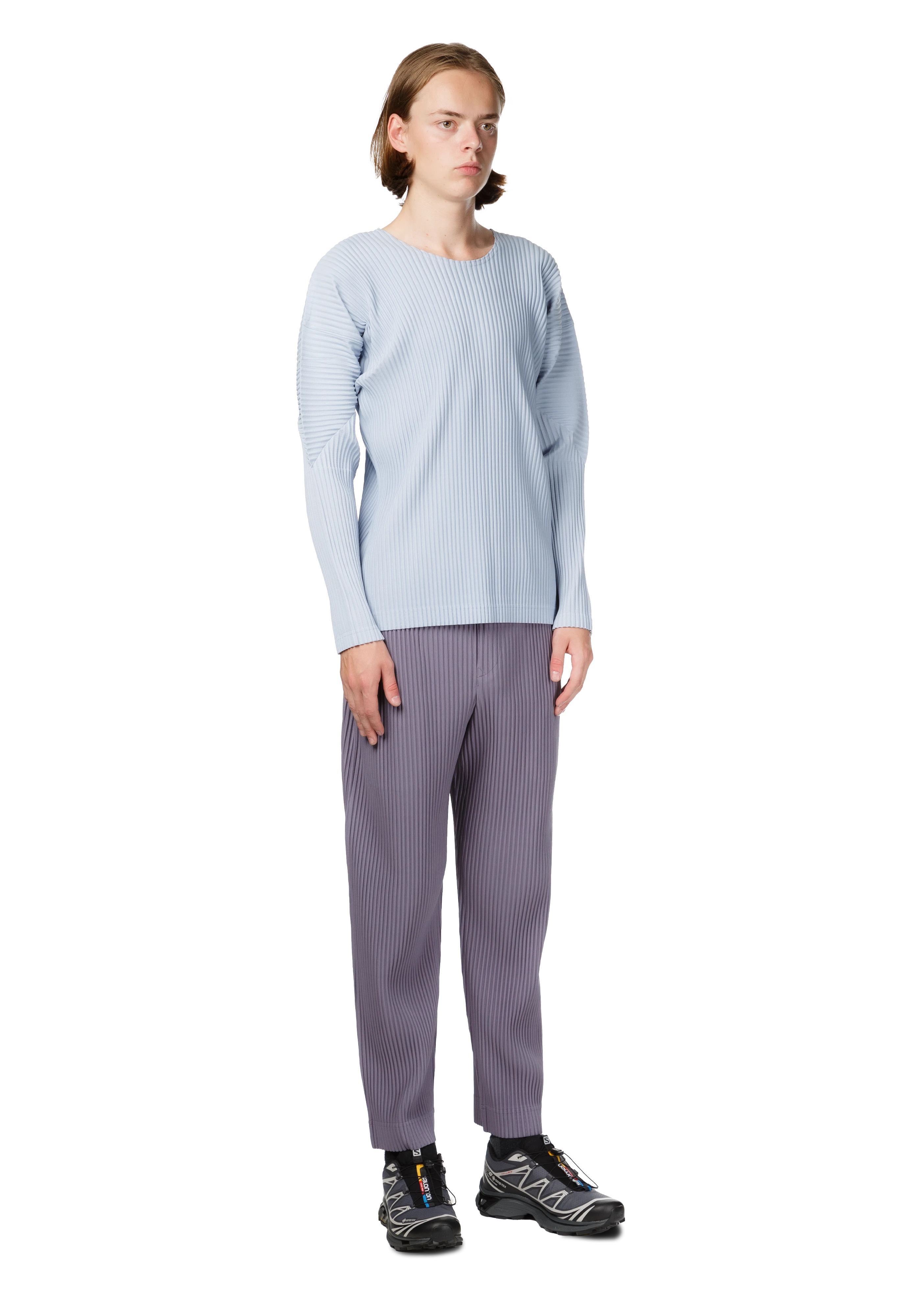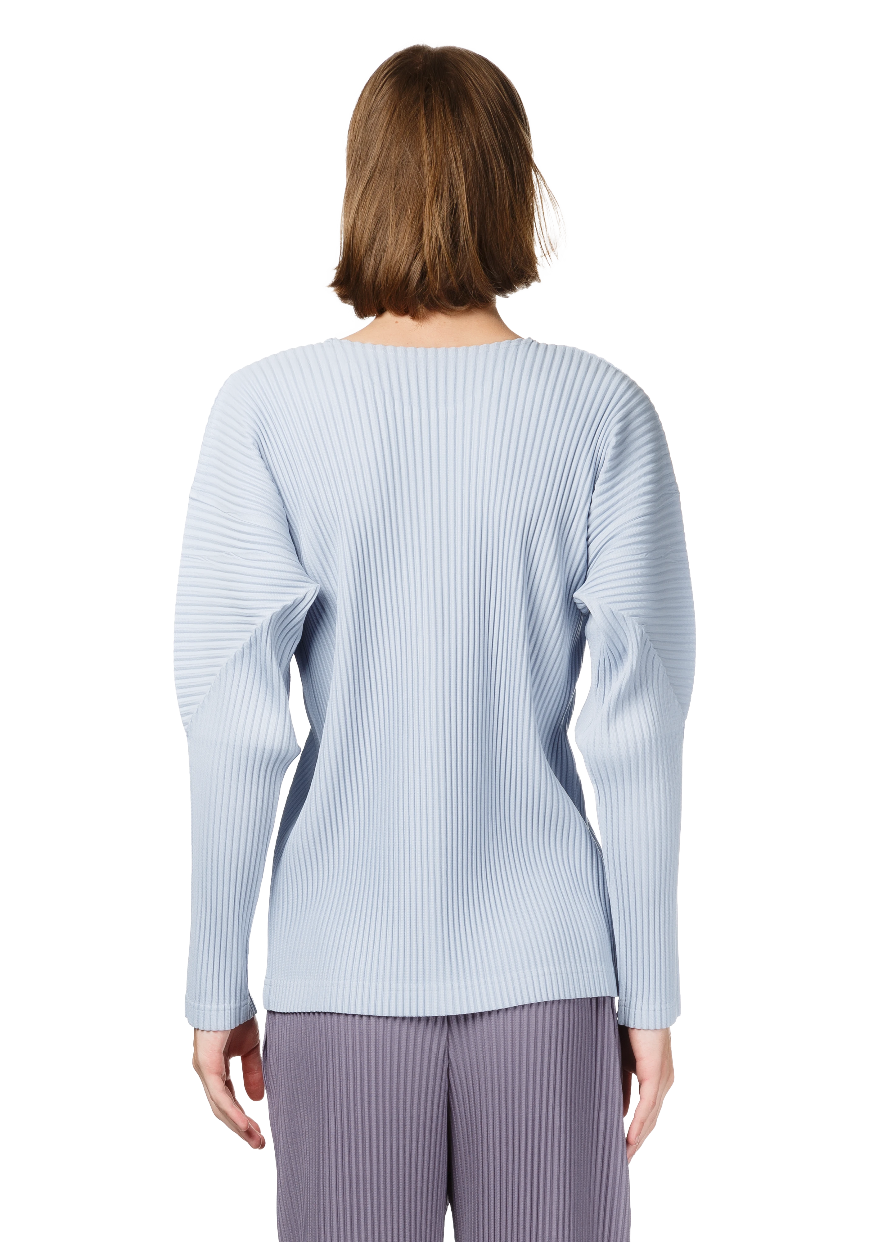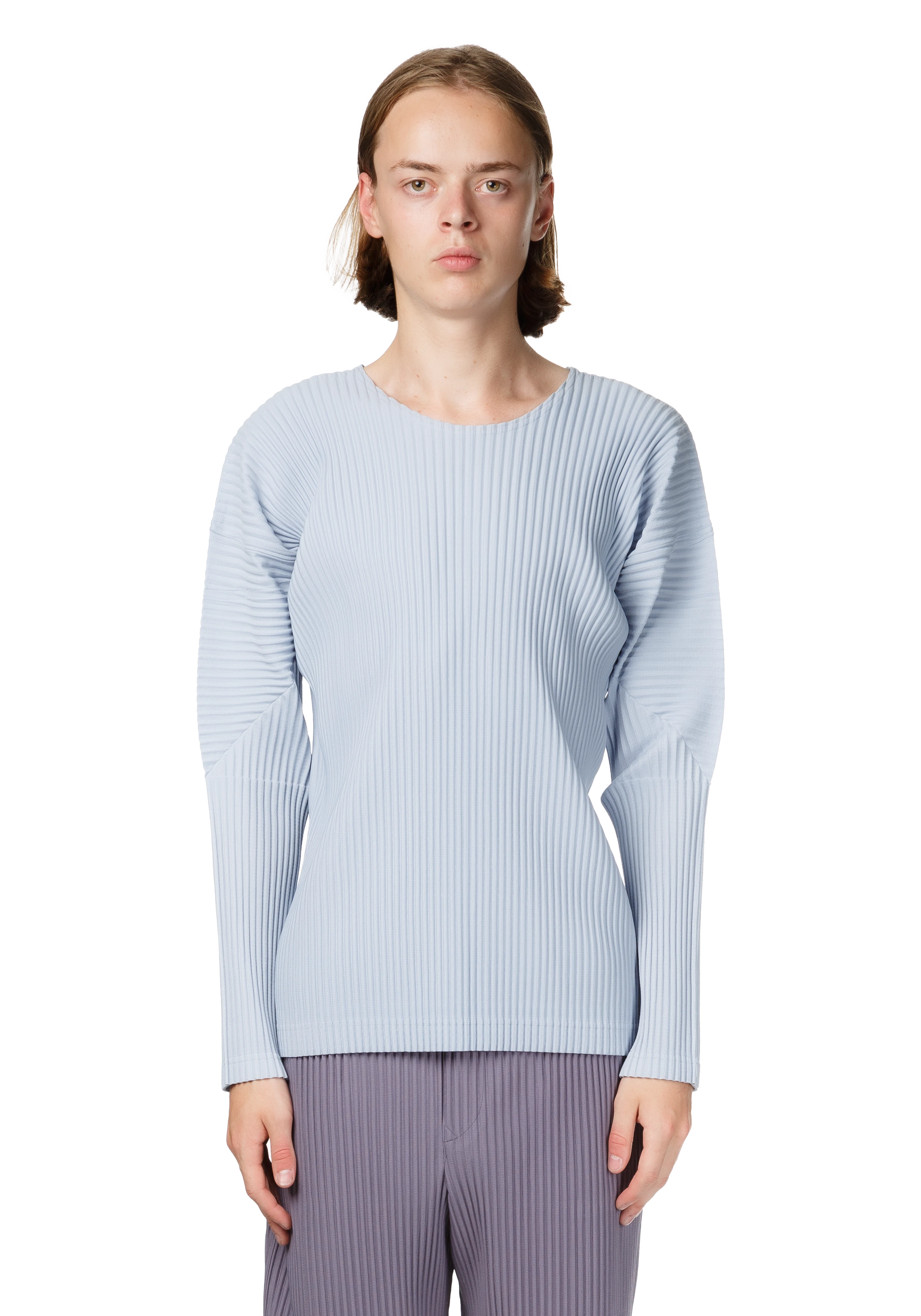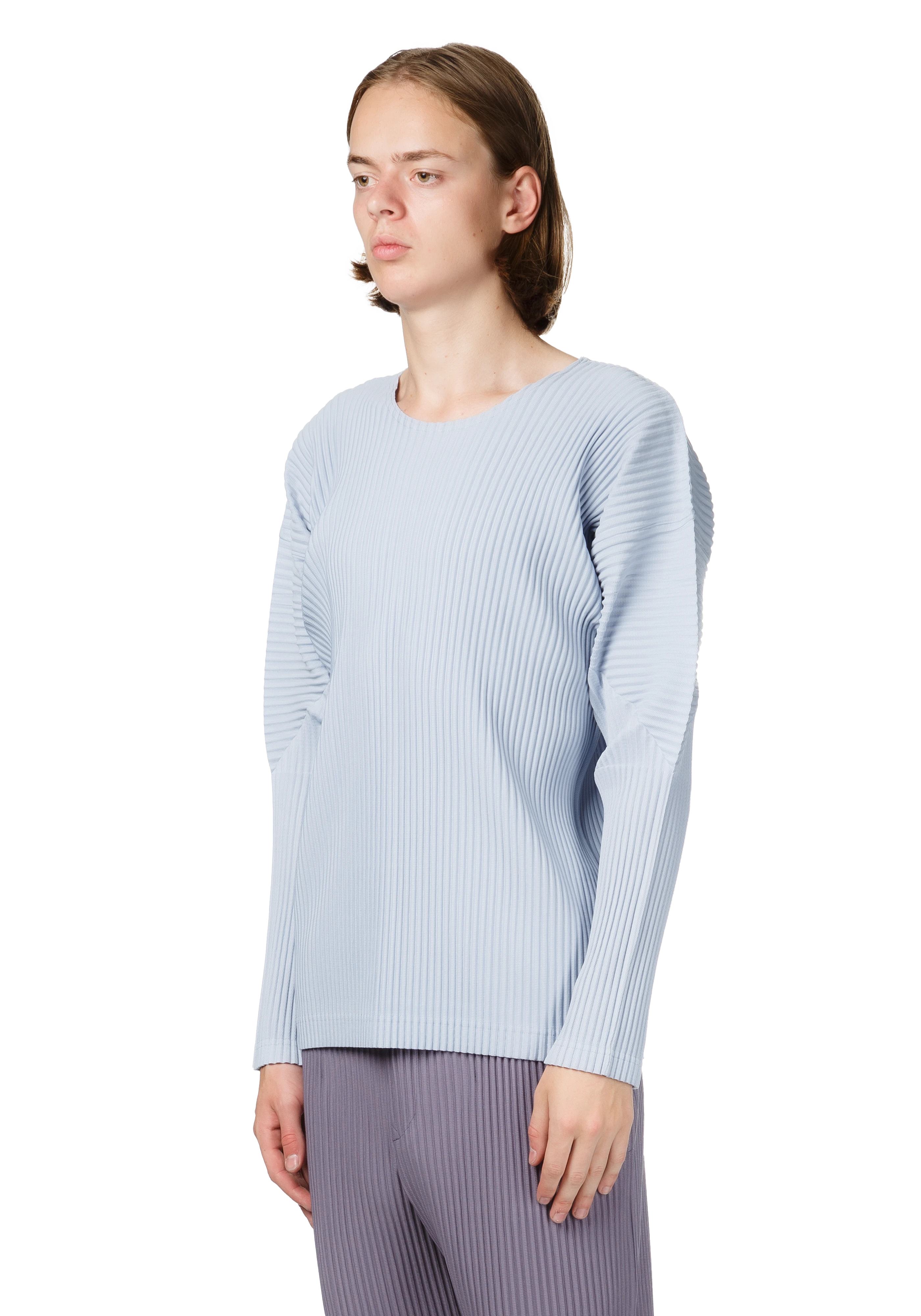 Long-sleeve garment-pleated T-Shirt in aqua blue.