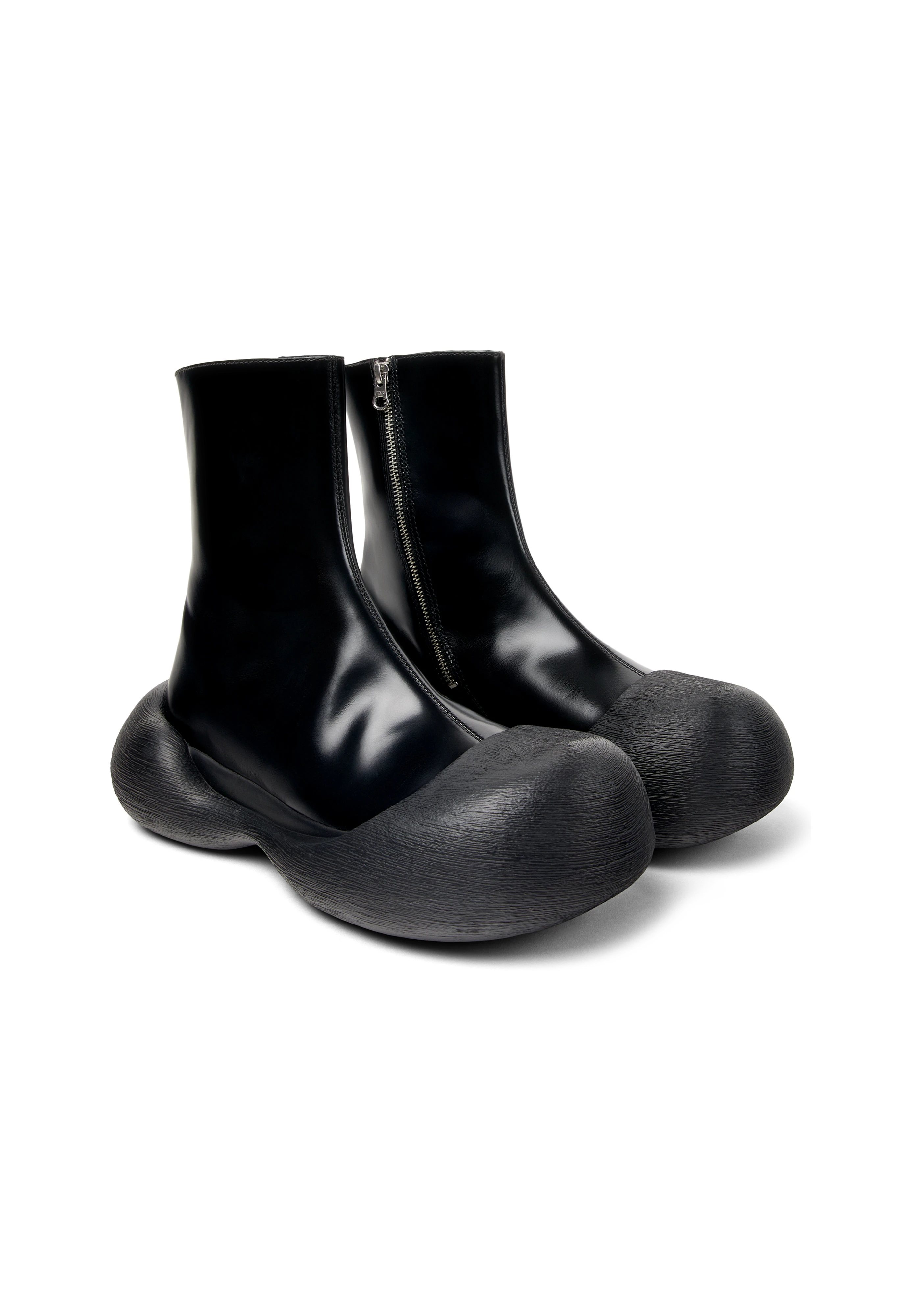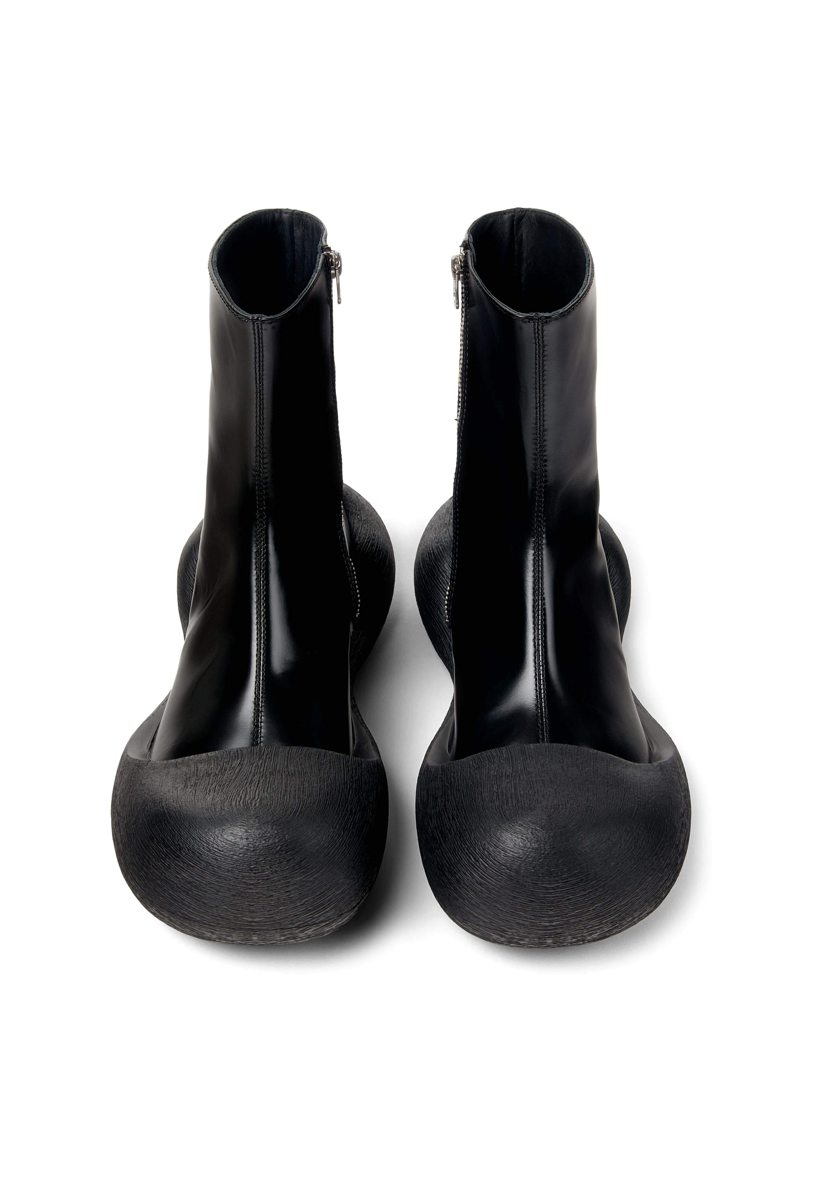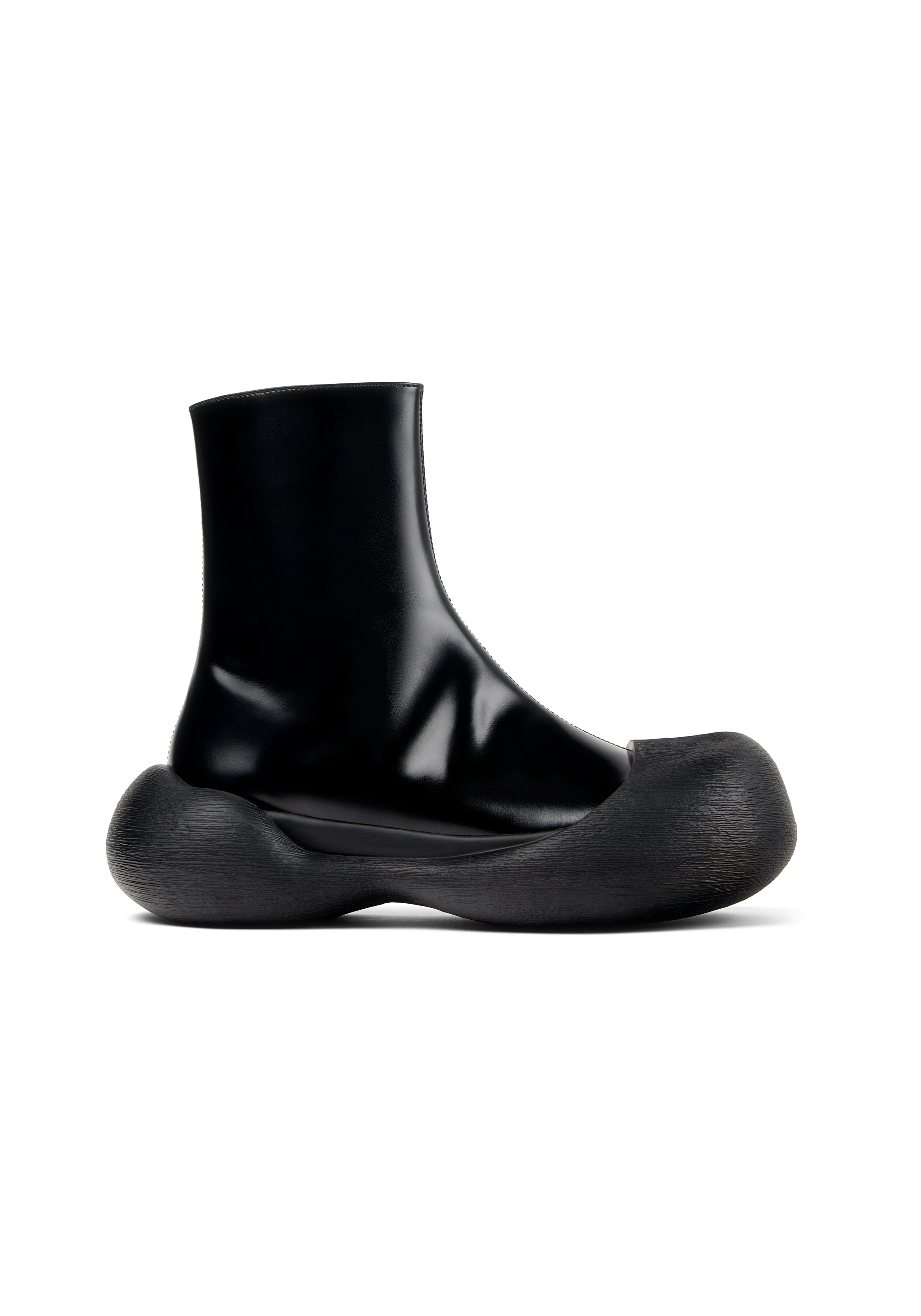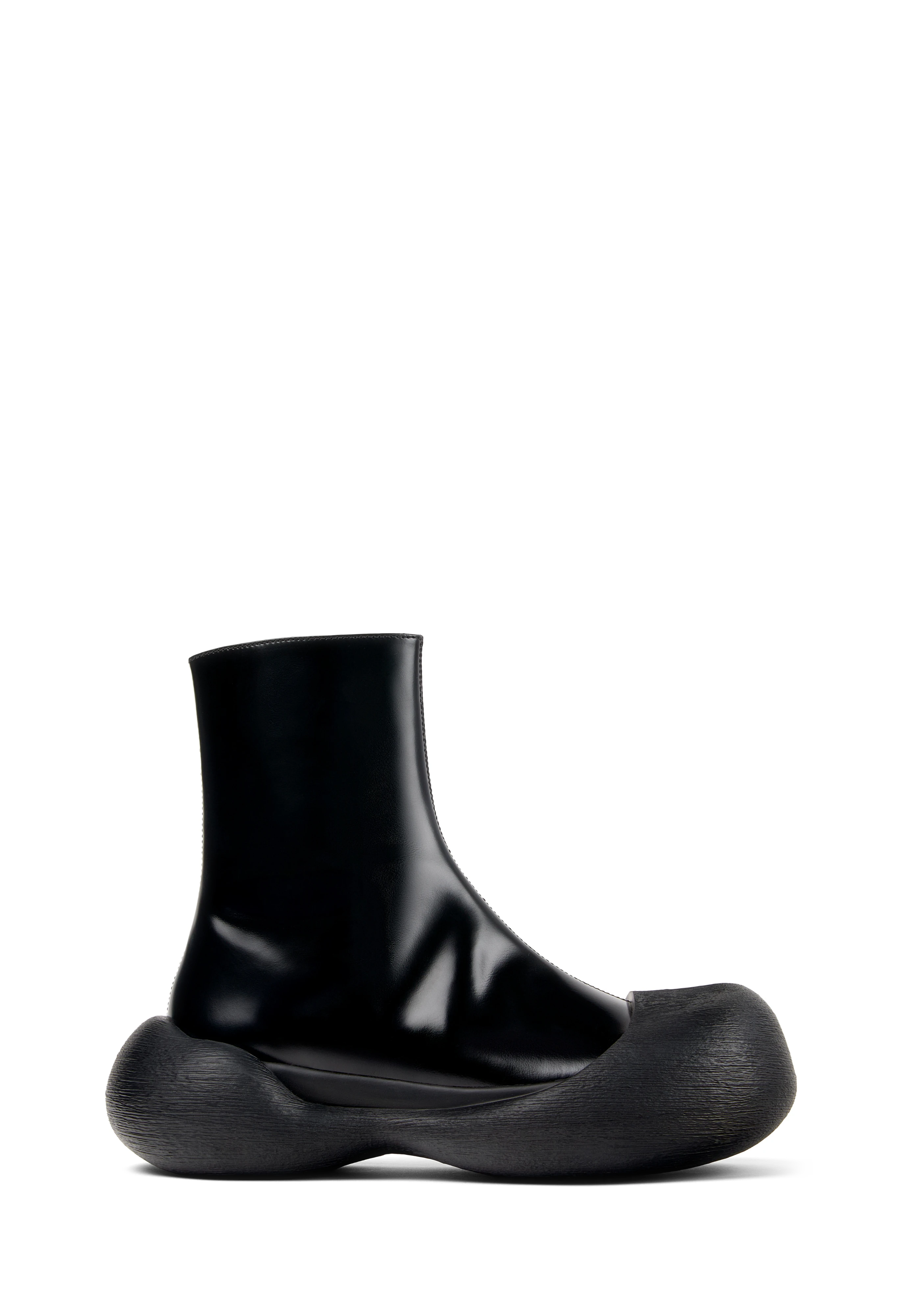 Ankle-high polished leather boots in black.