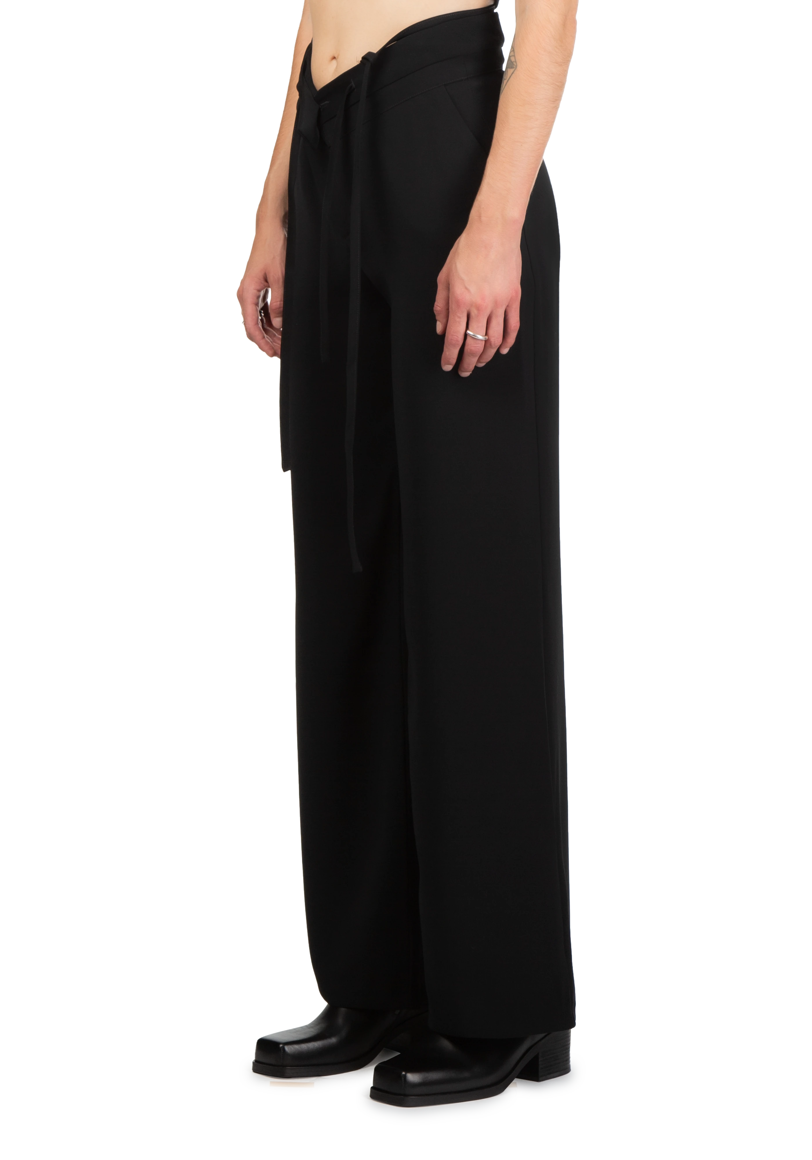 Loose-fit wide-leg stretch broadcloth trousers in black.