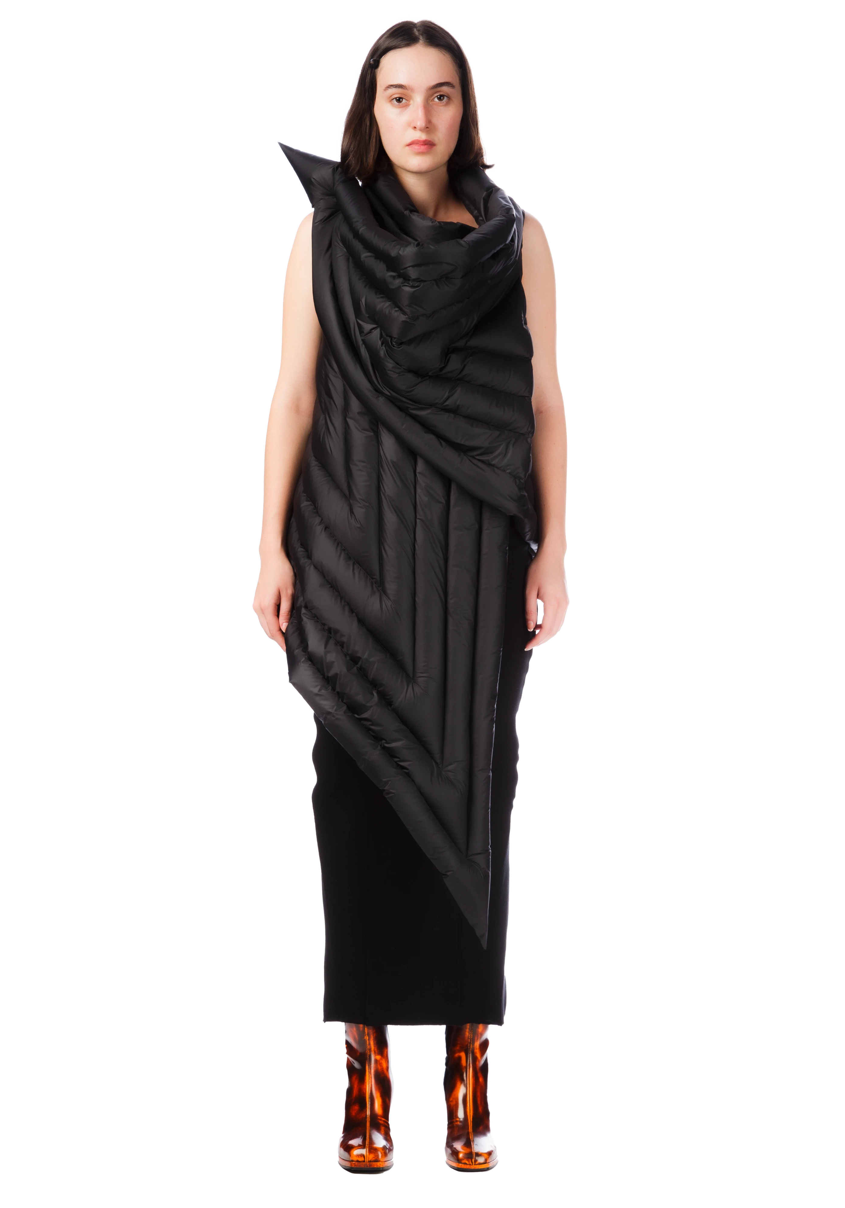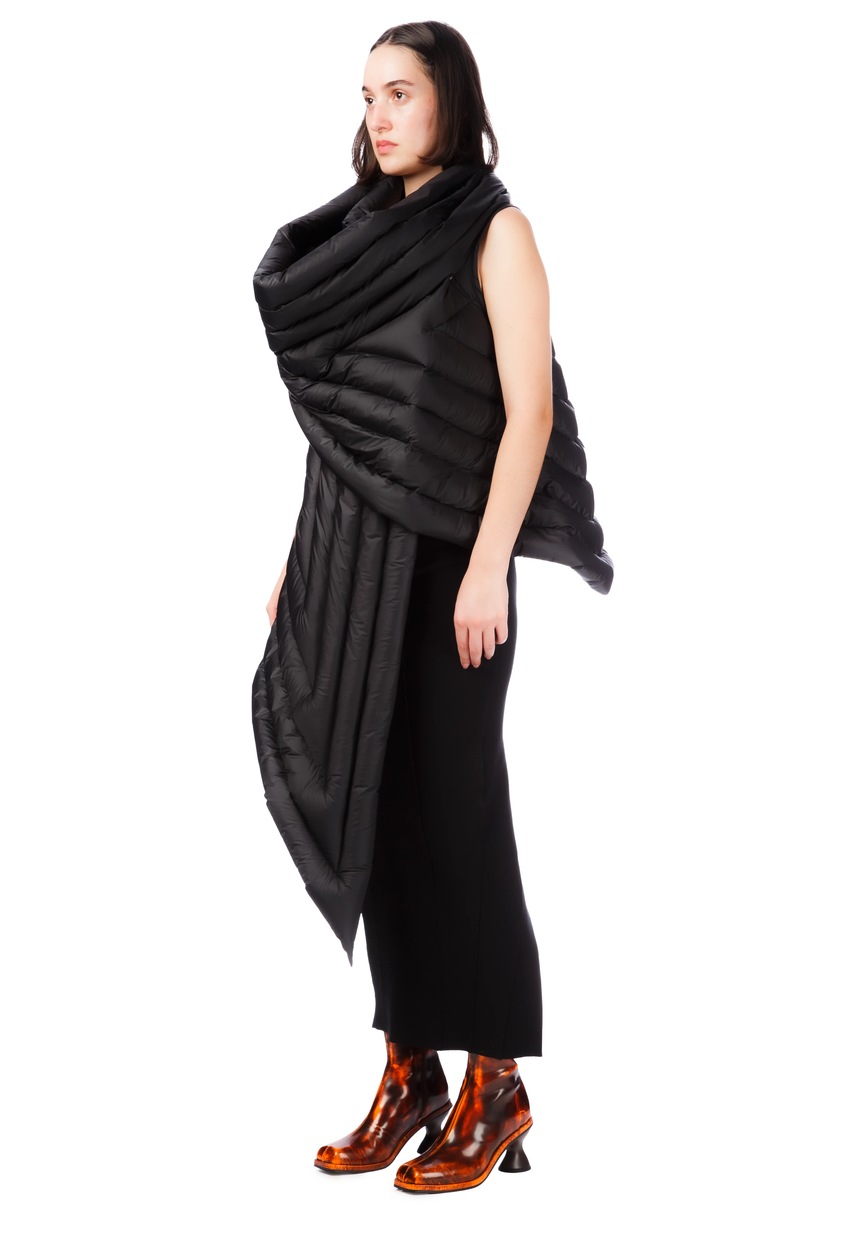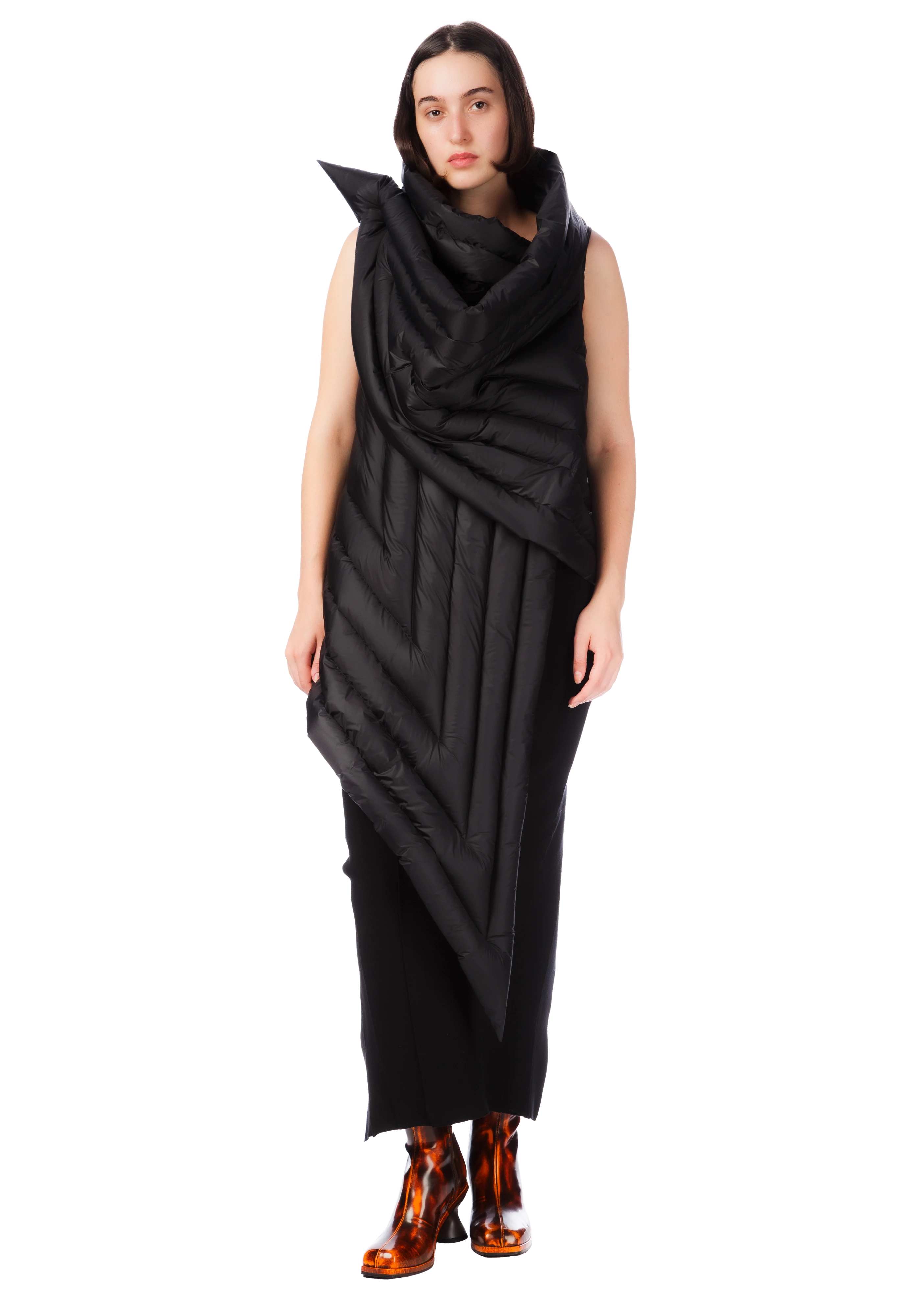 Sleeveless quilted down-filles nylon taffeta vest in black.