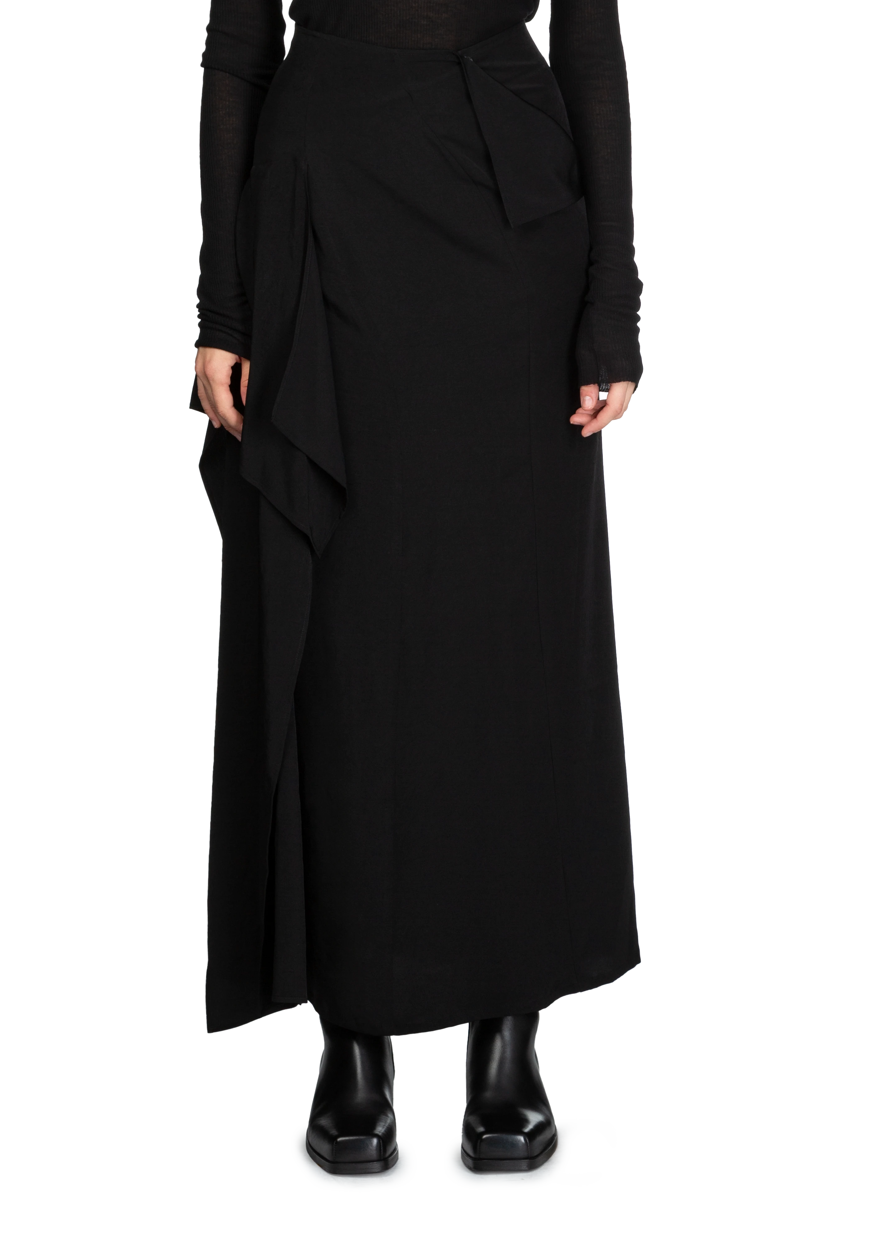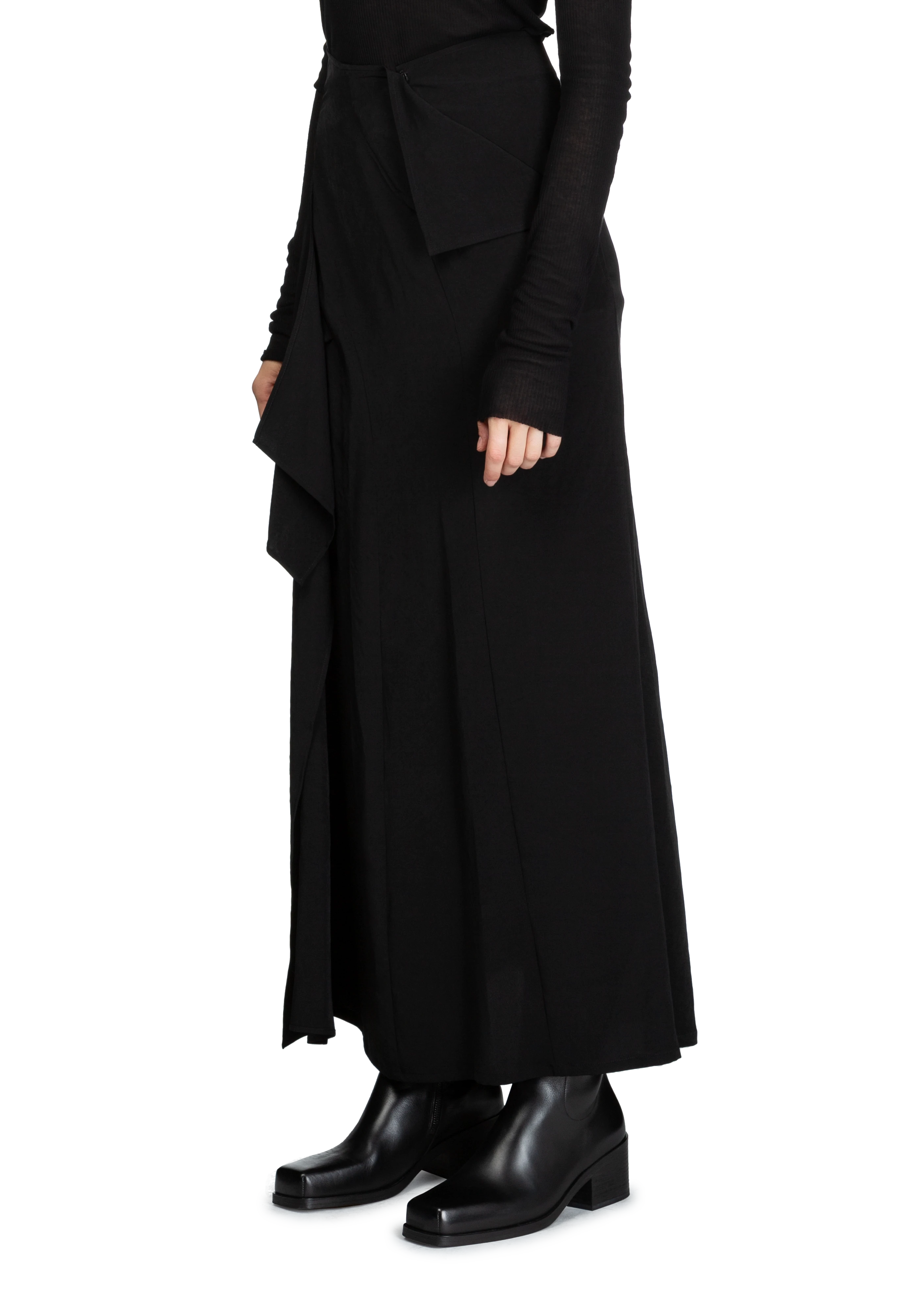 Longsleeve crepe de chine maxi skirt in black.