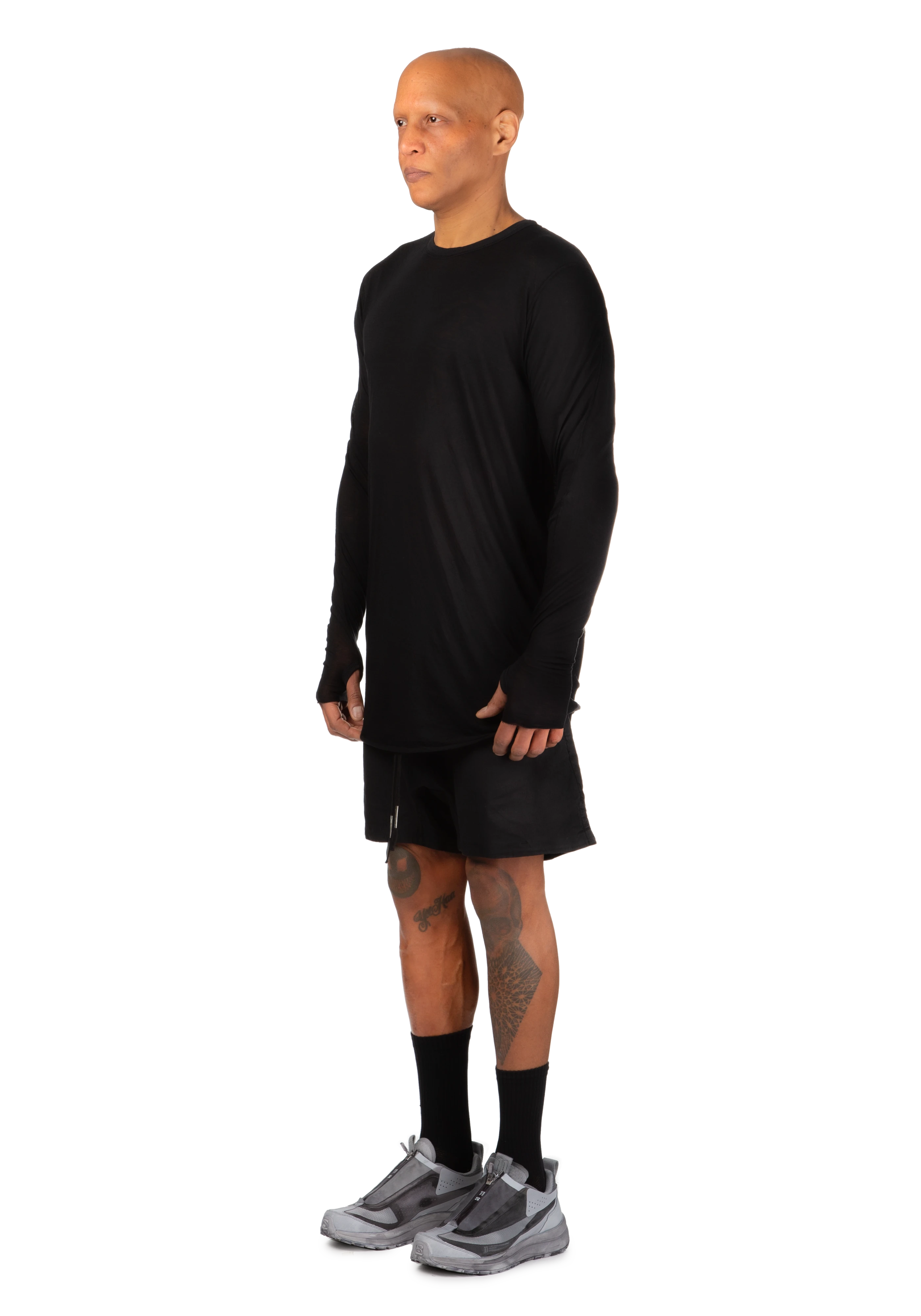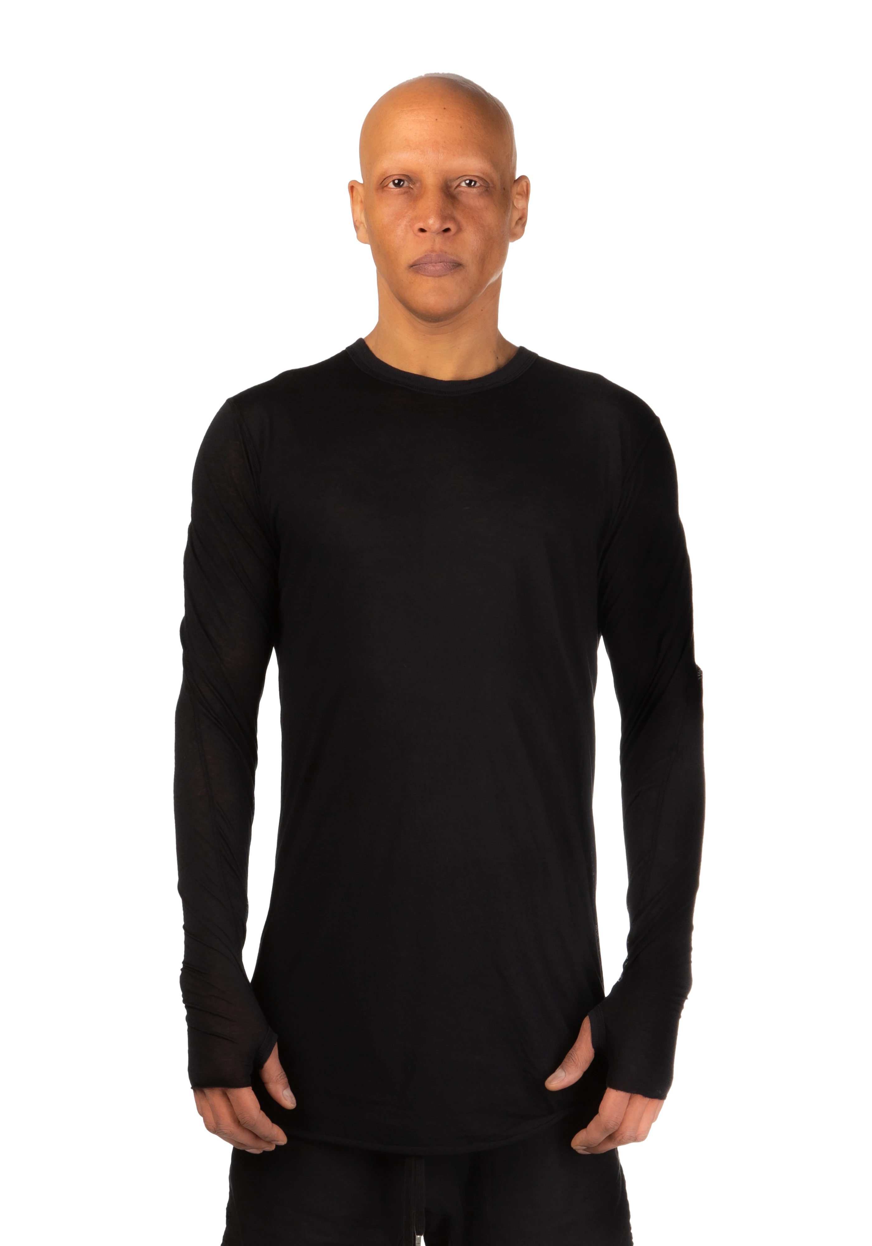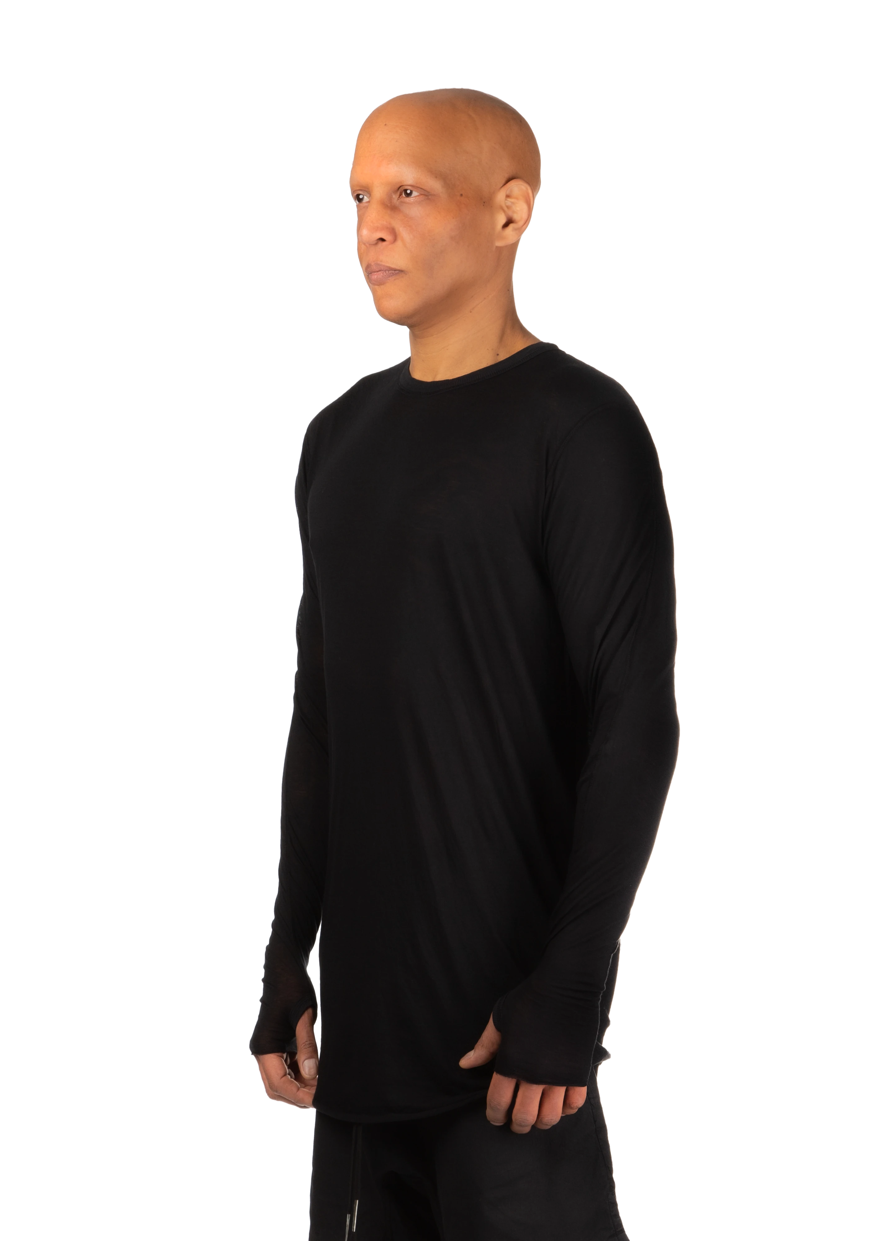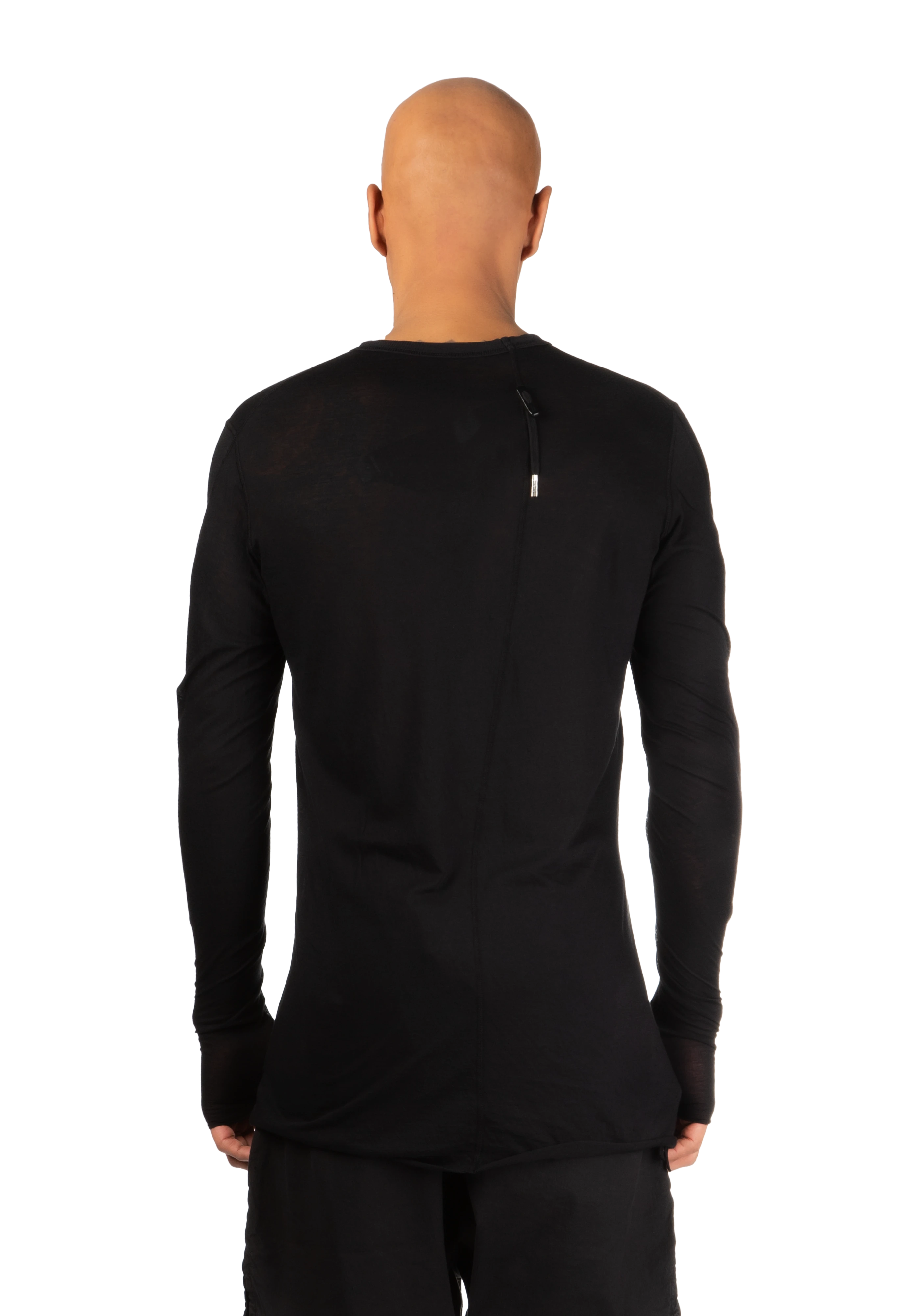 Long sleeve lightweight garment-dyed cotton- and cashmere-blend jersey T-shirt in black.