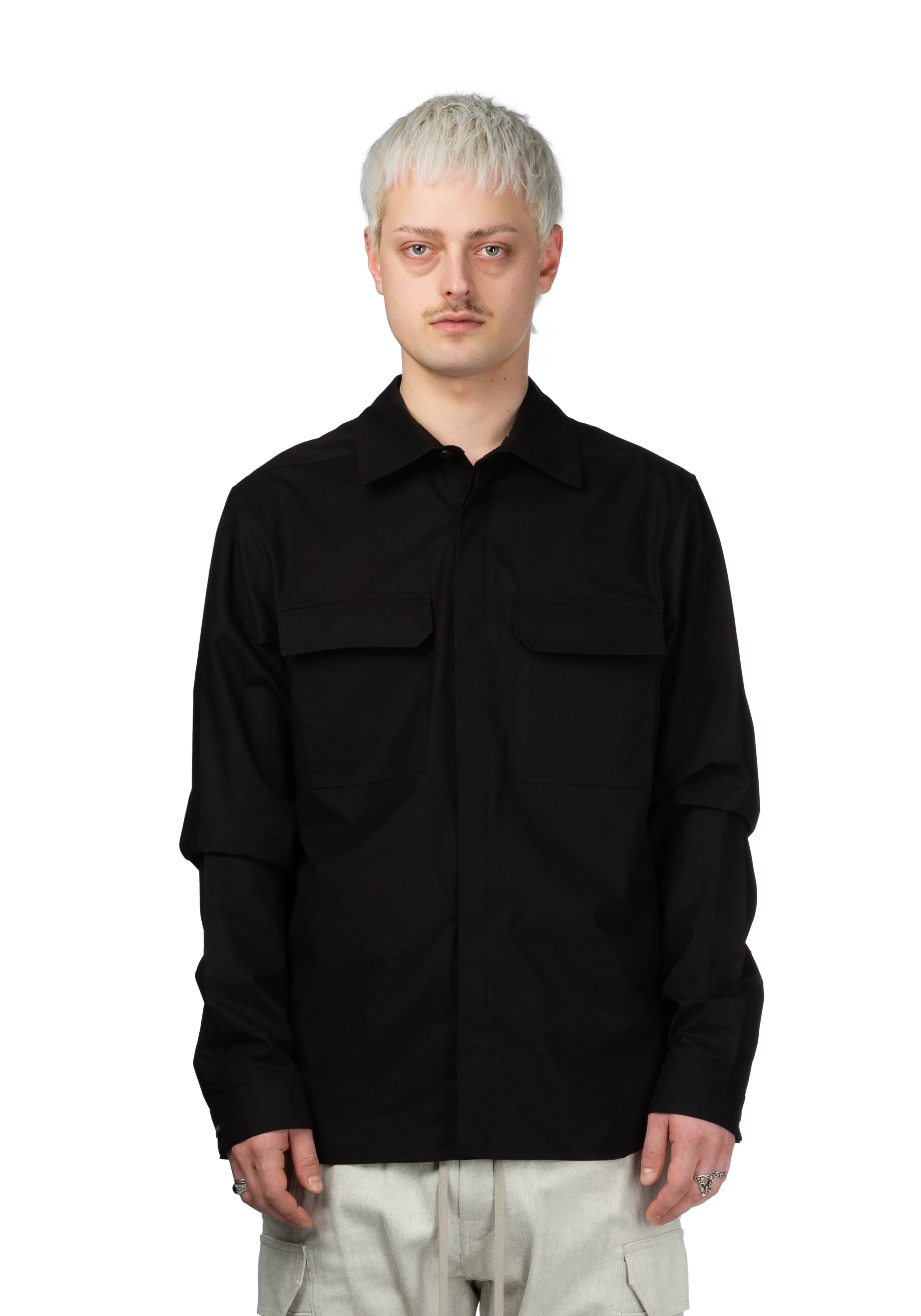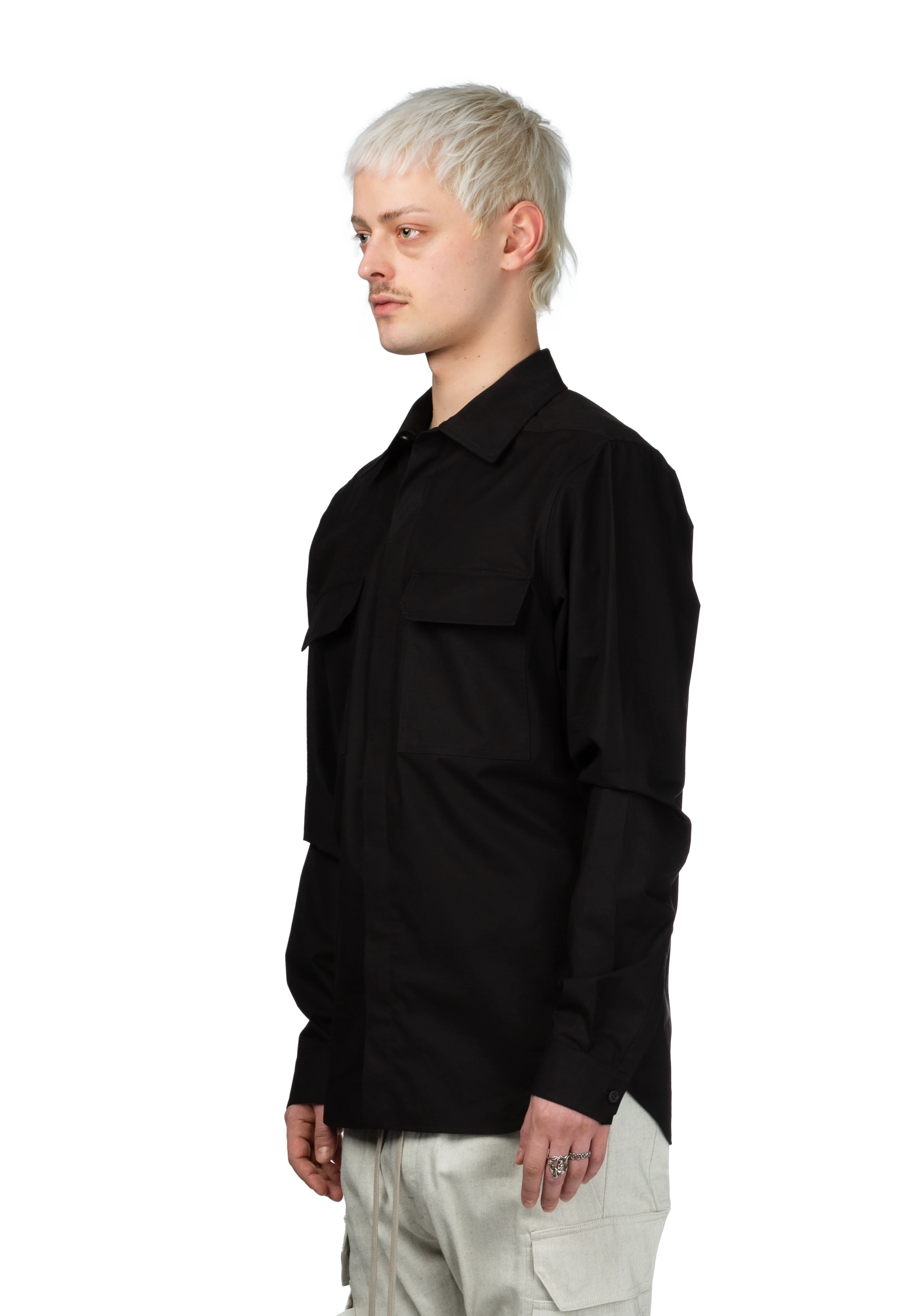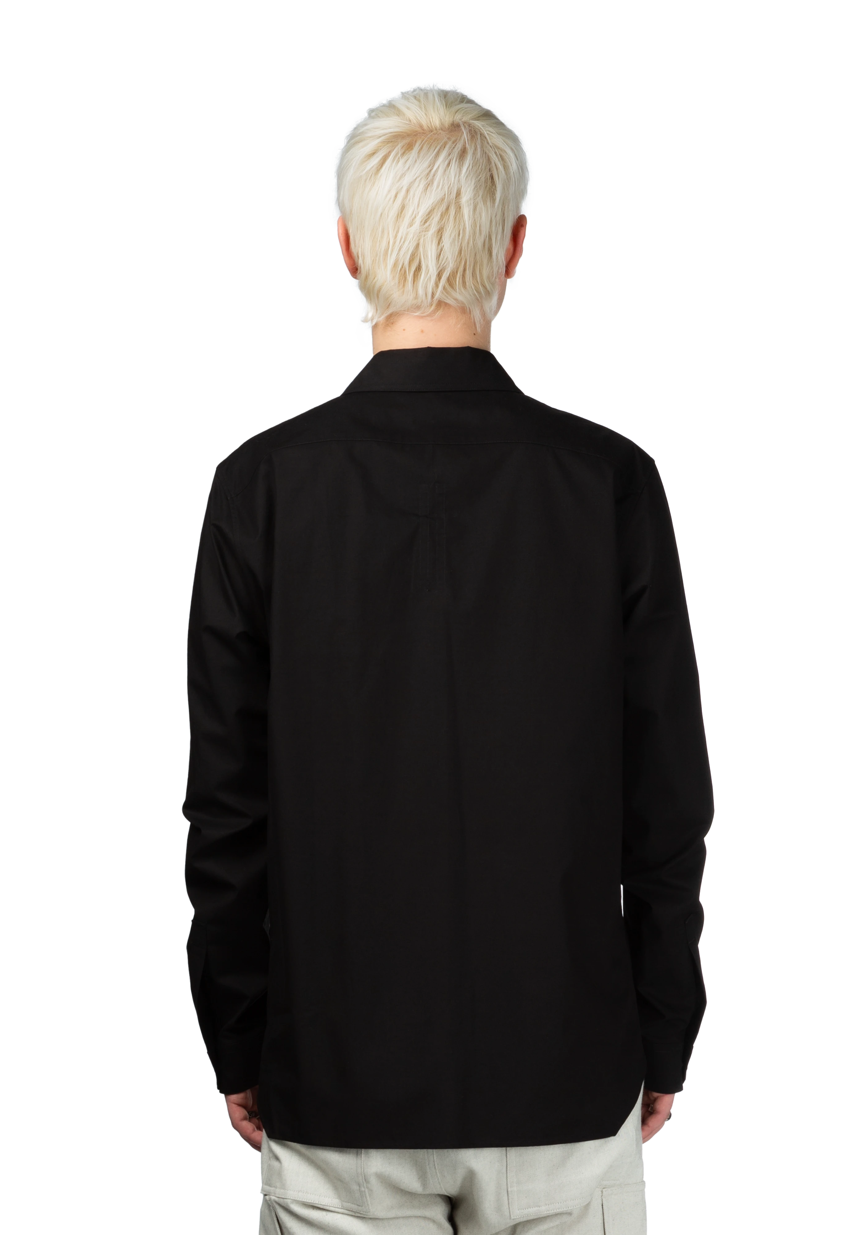 Long sleeve lightweight cotton poplin shirt in black.