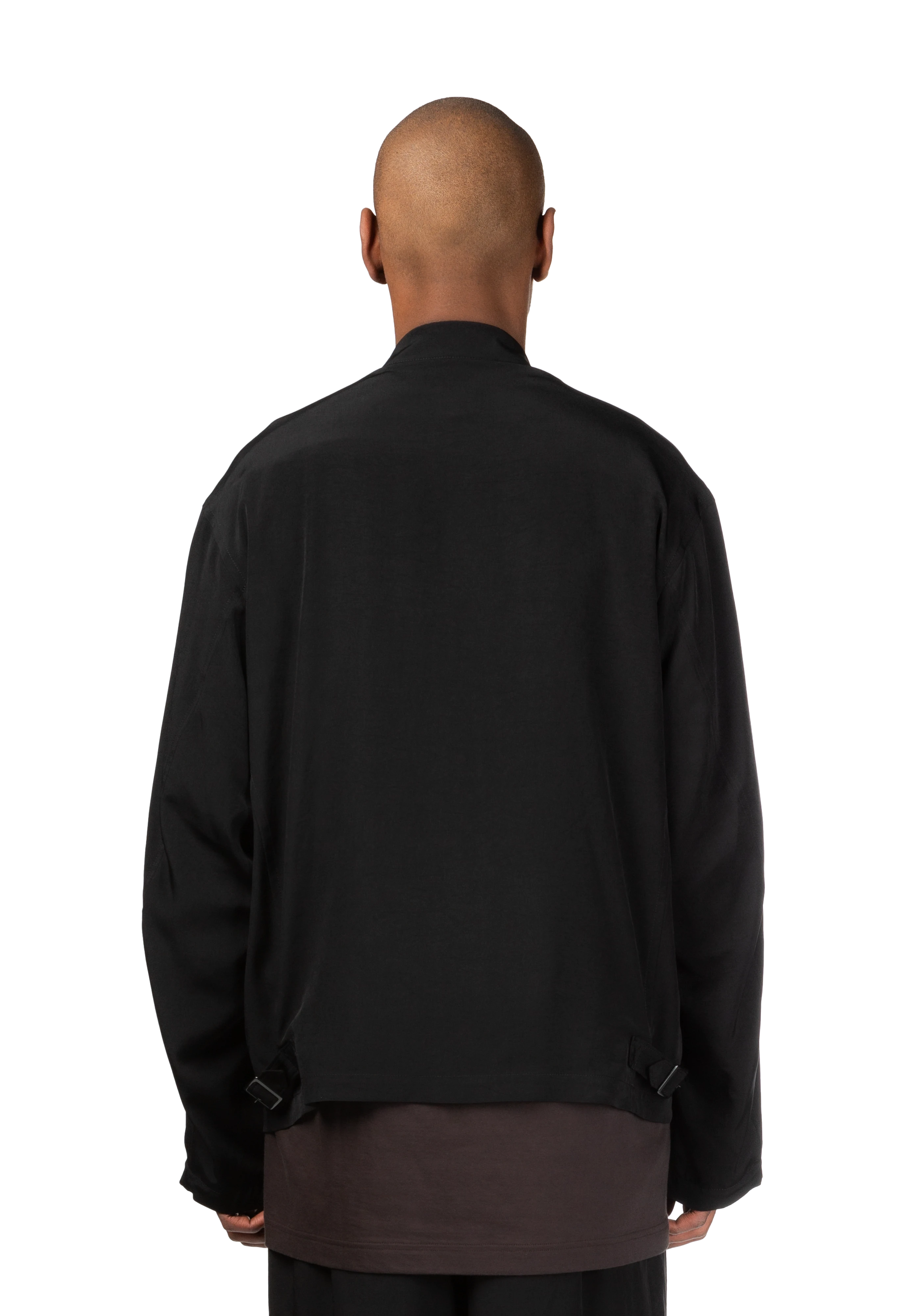 Long-sleeve faille blouson in black.