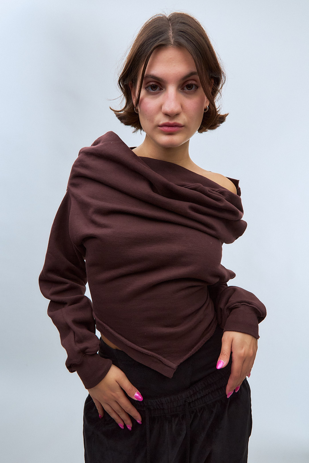 Product information "Dark Brown Off-Shoulder Slouchy Sweater"