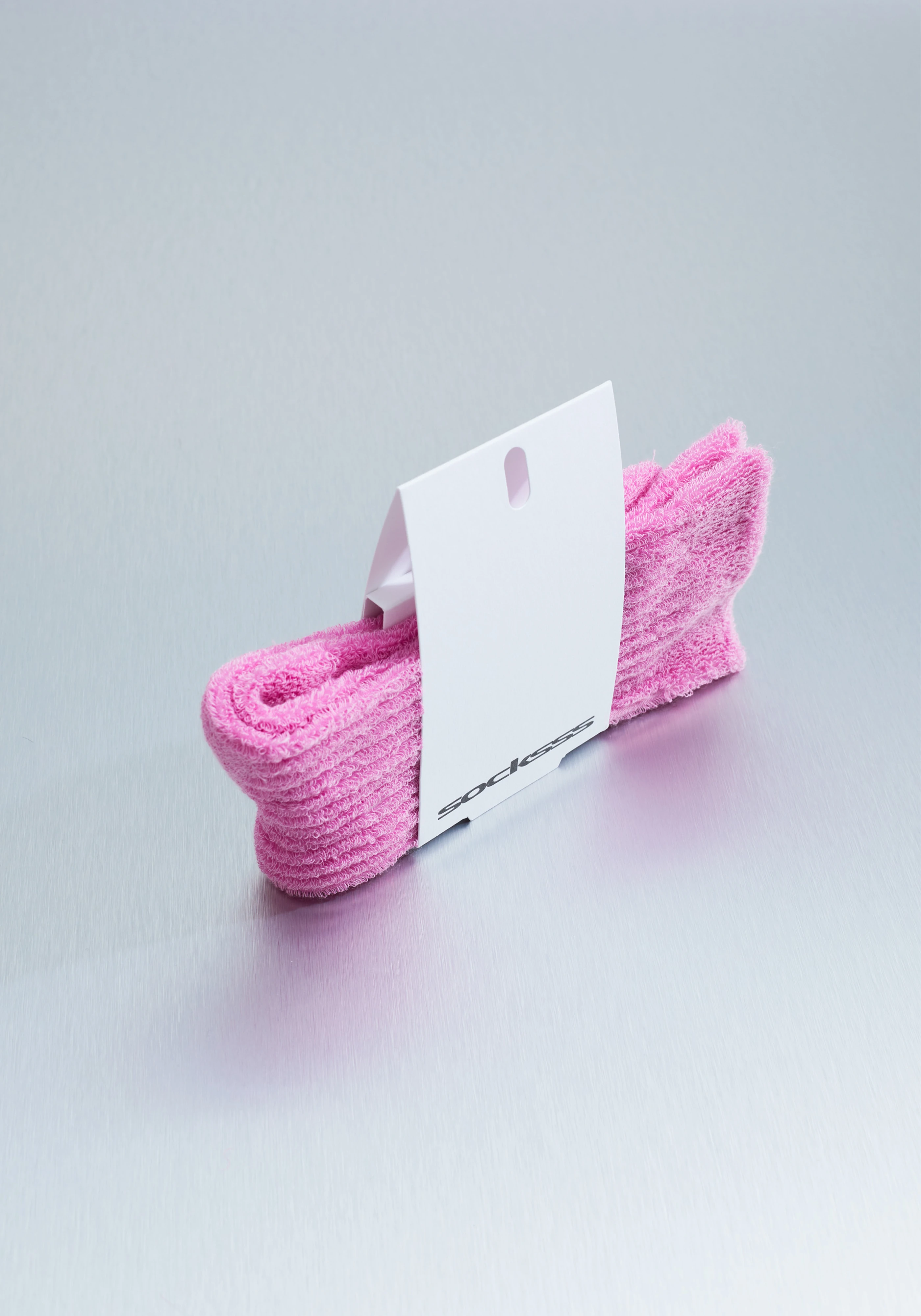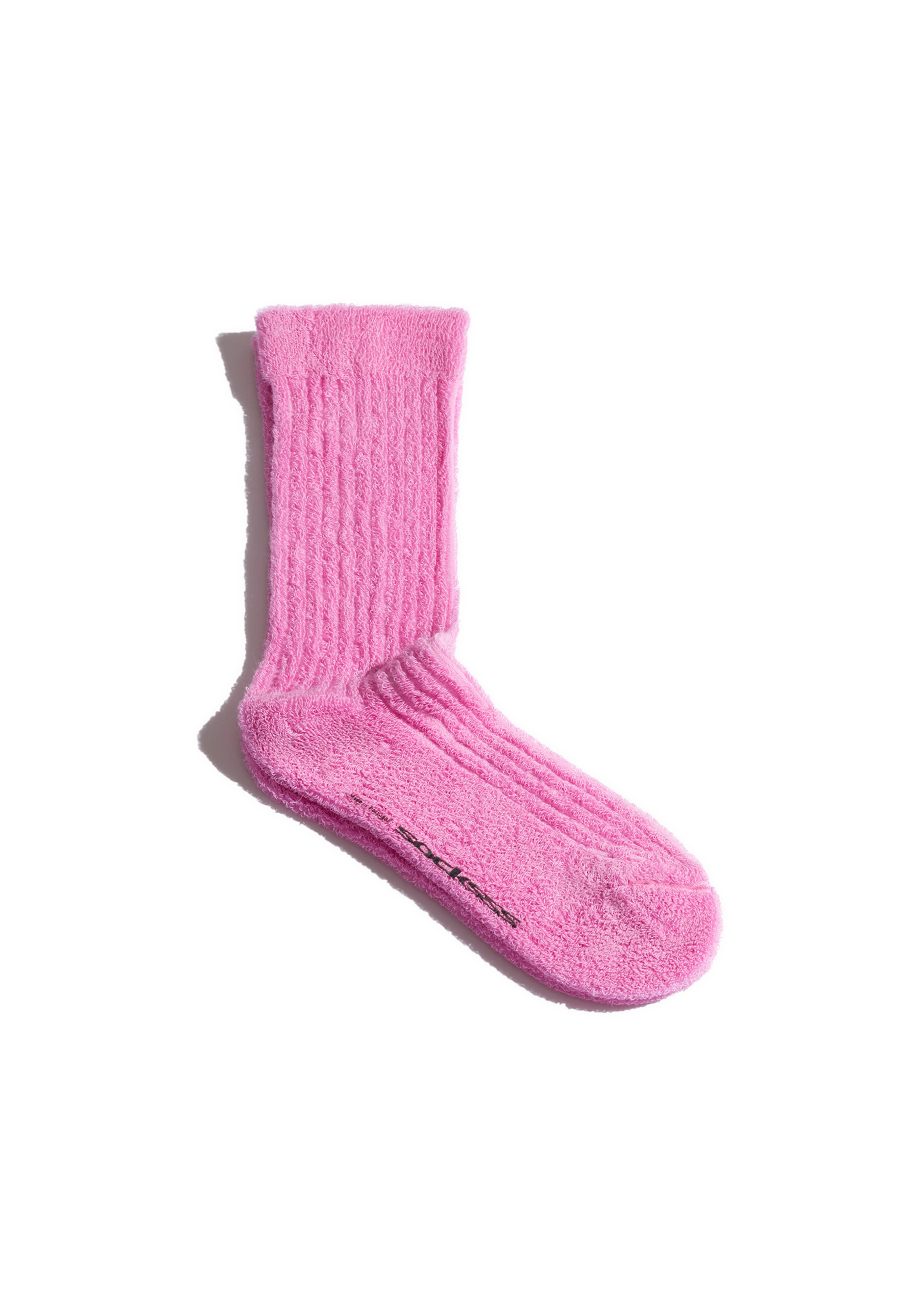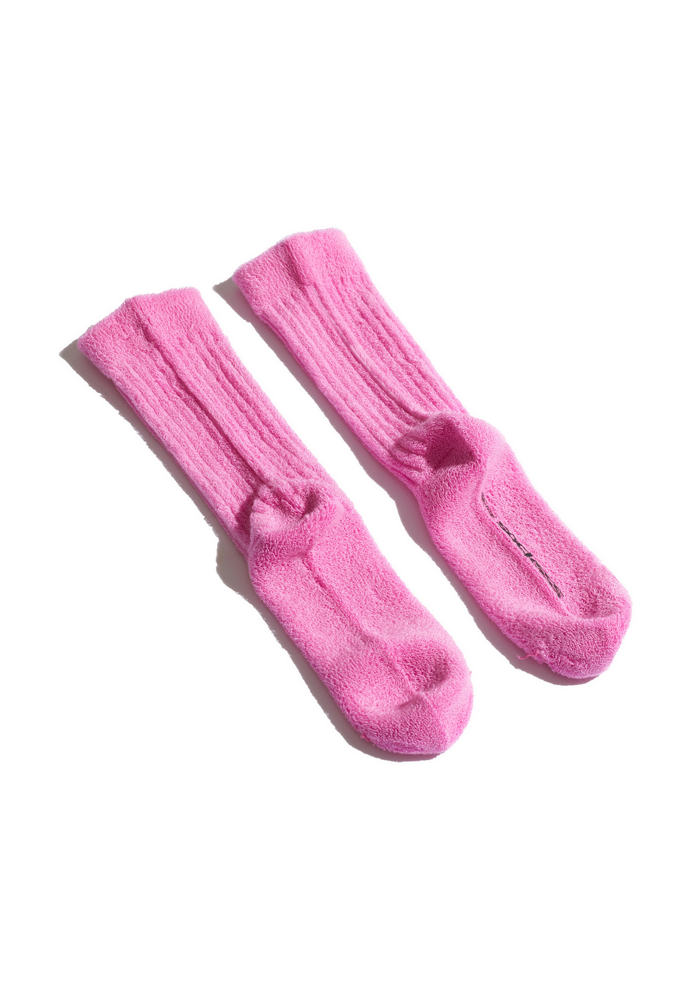 Calf-high knit stretch cotton terrycloth socks in pink.