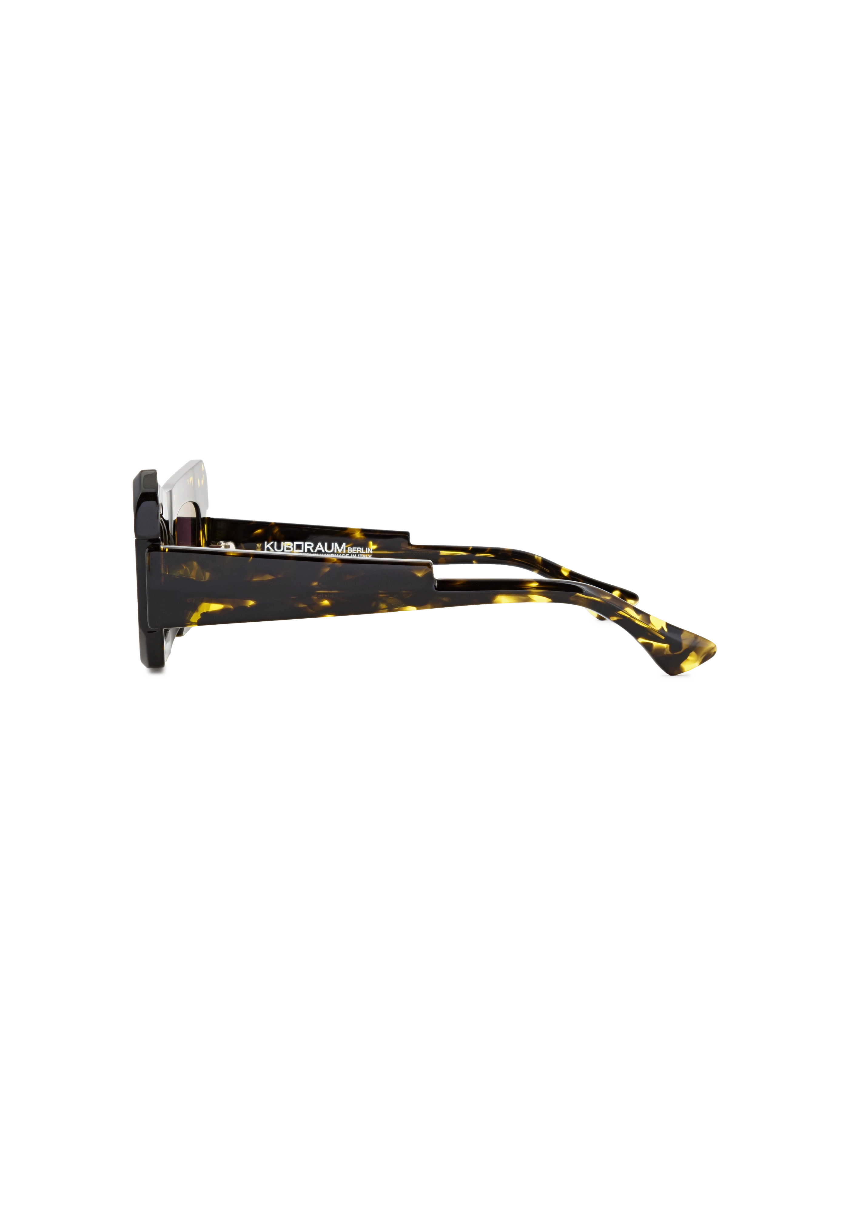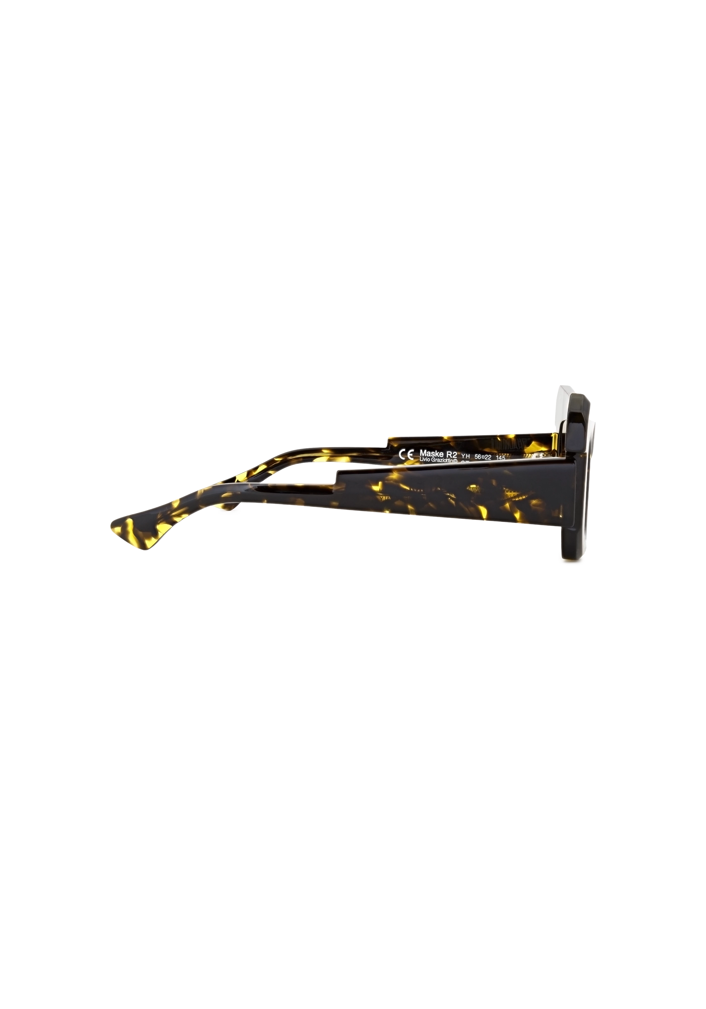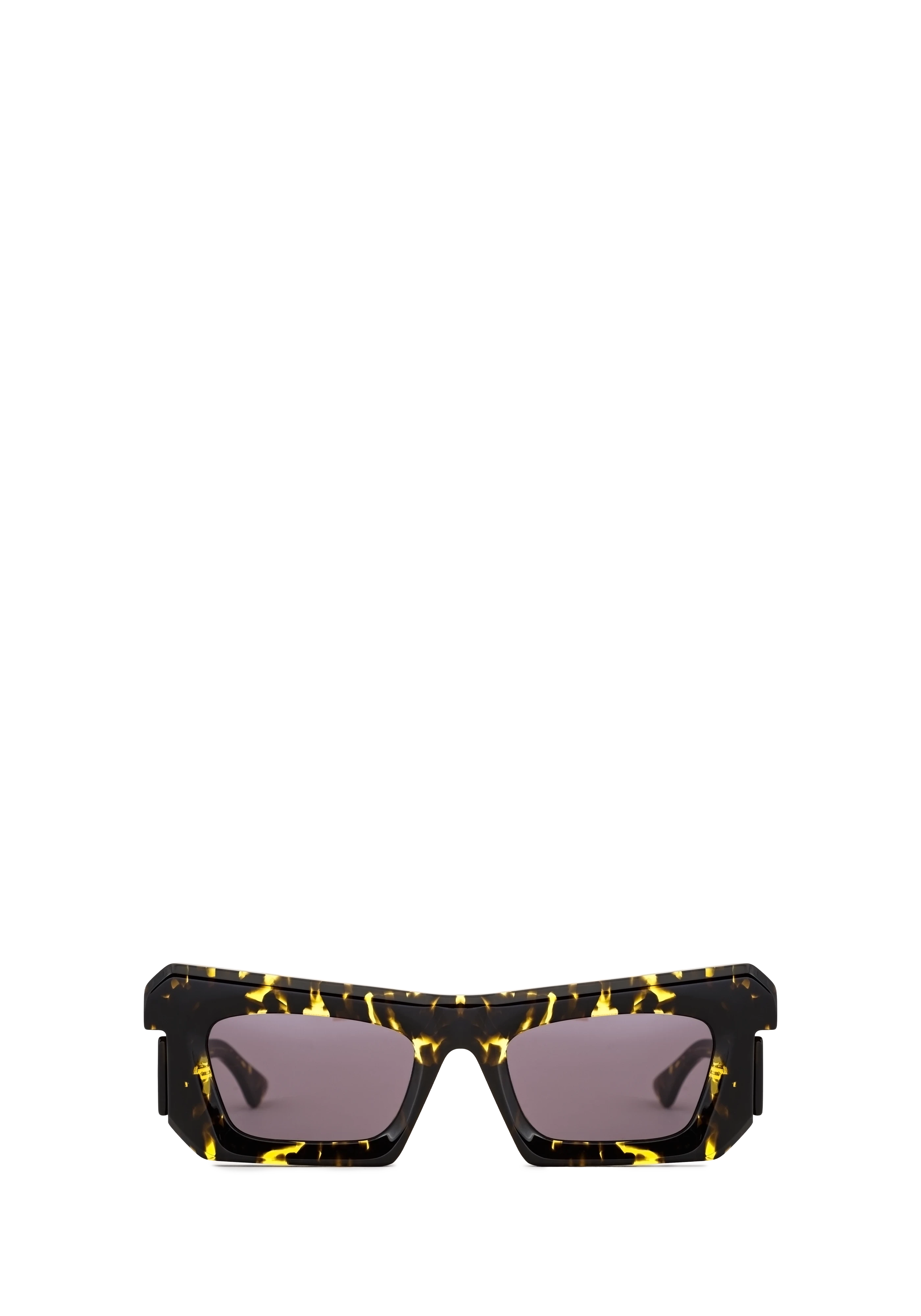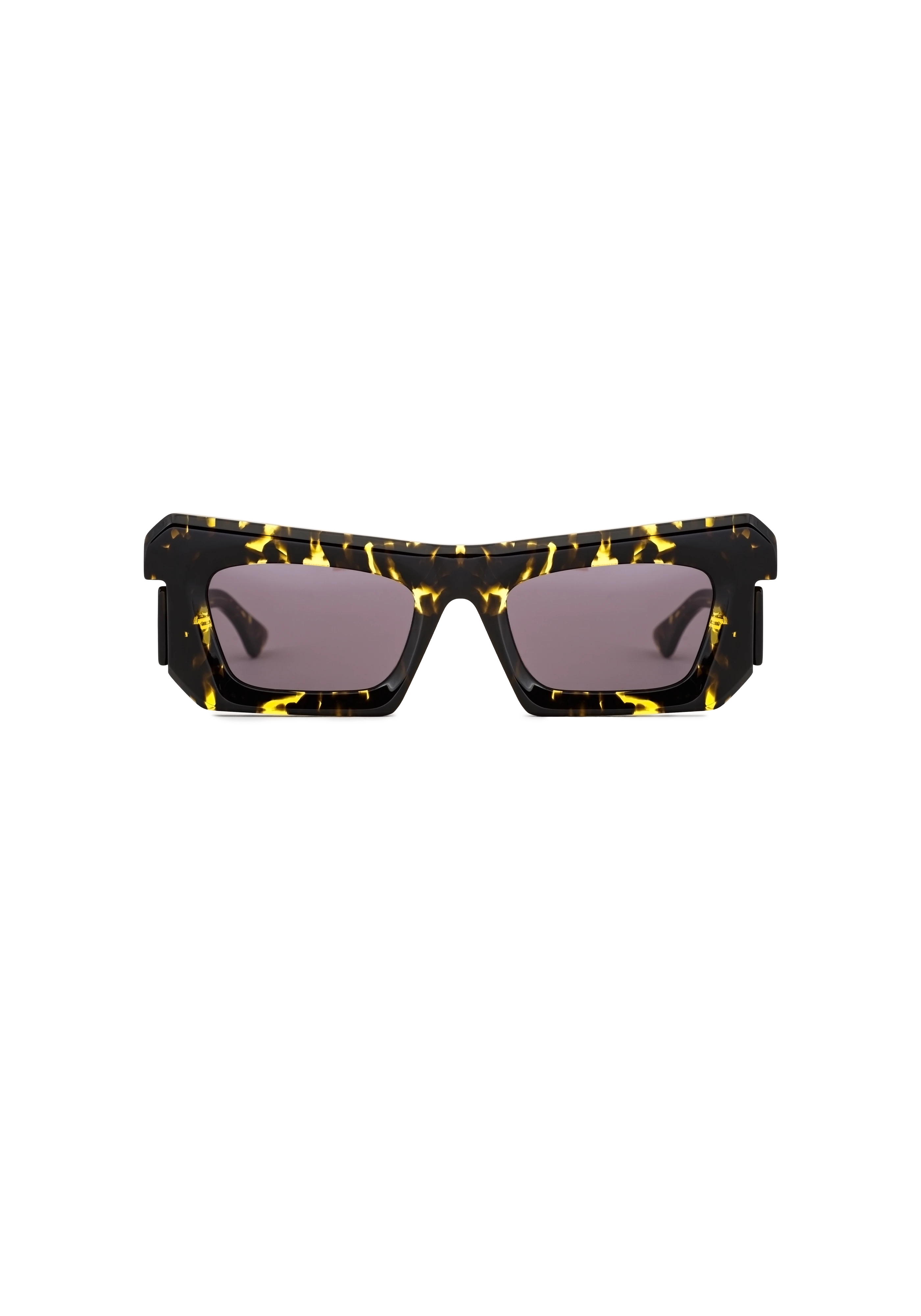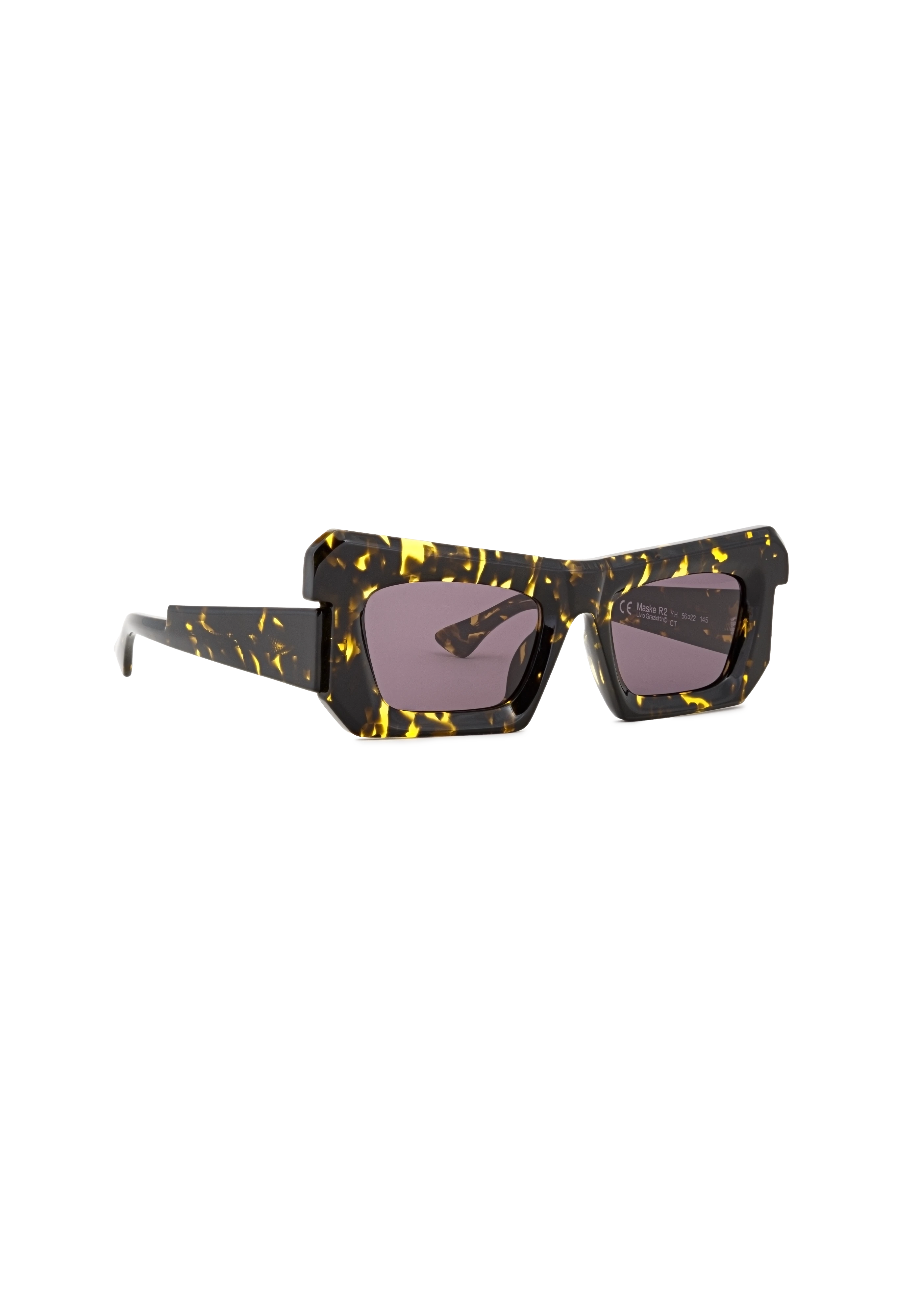 Handcrafted rectangular acetate-frame sunglasses in yellow havana.