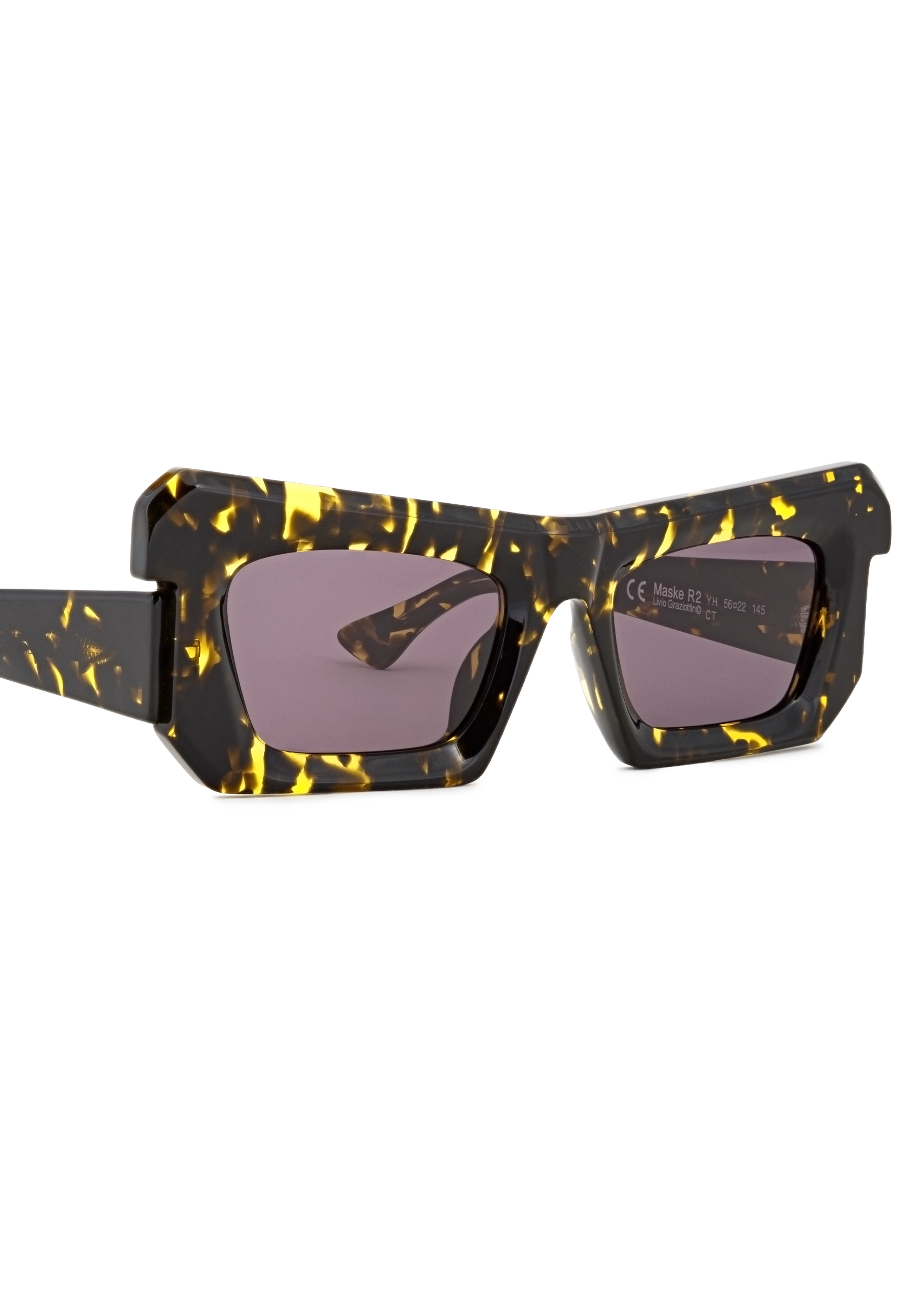 Handcrafted rectangular acetate-frame sunglasses in yellow havana.