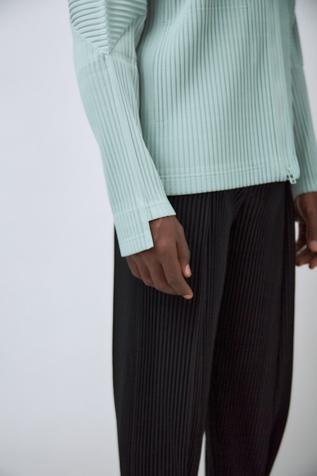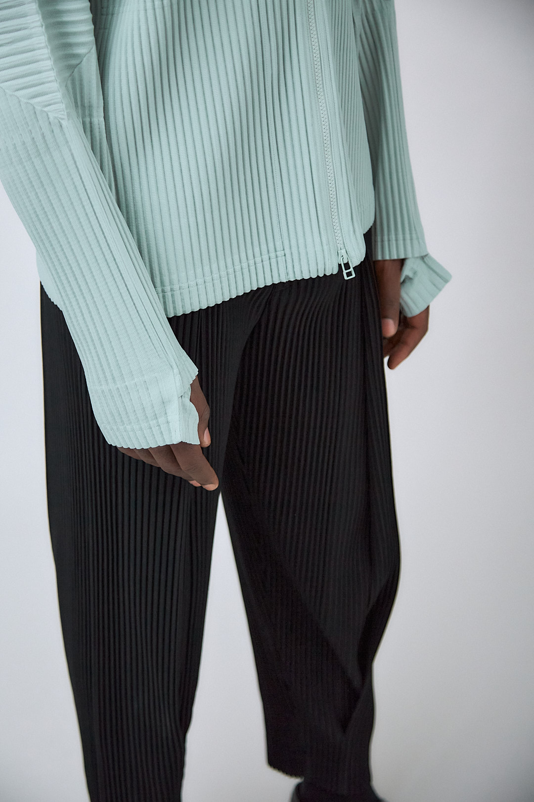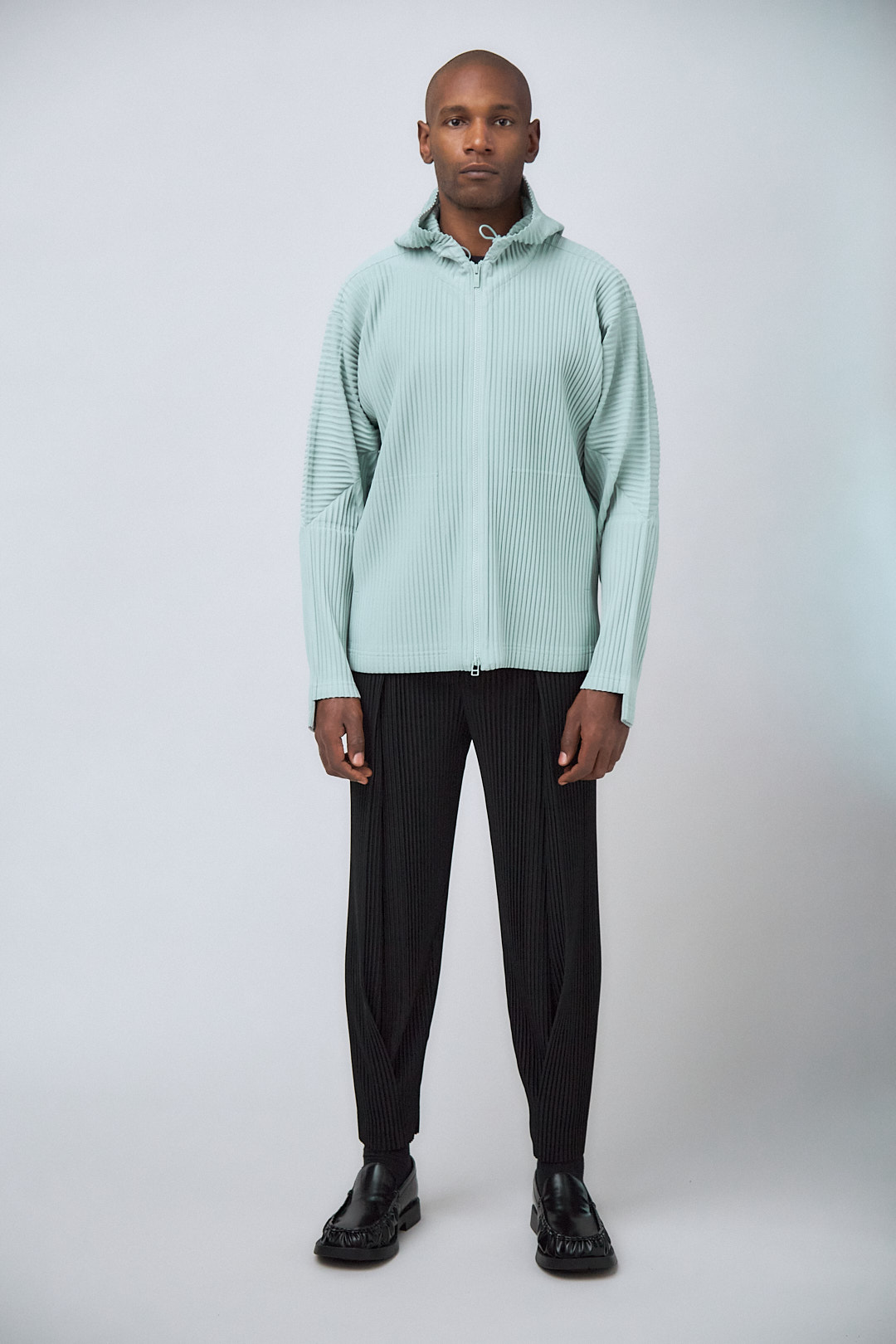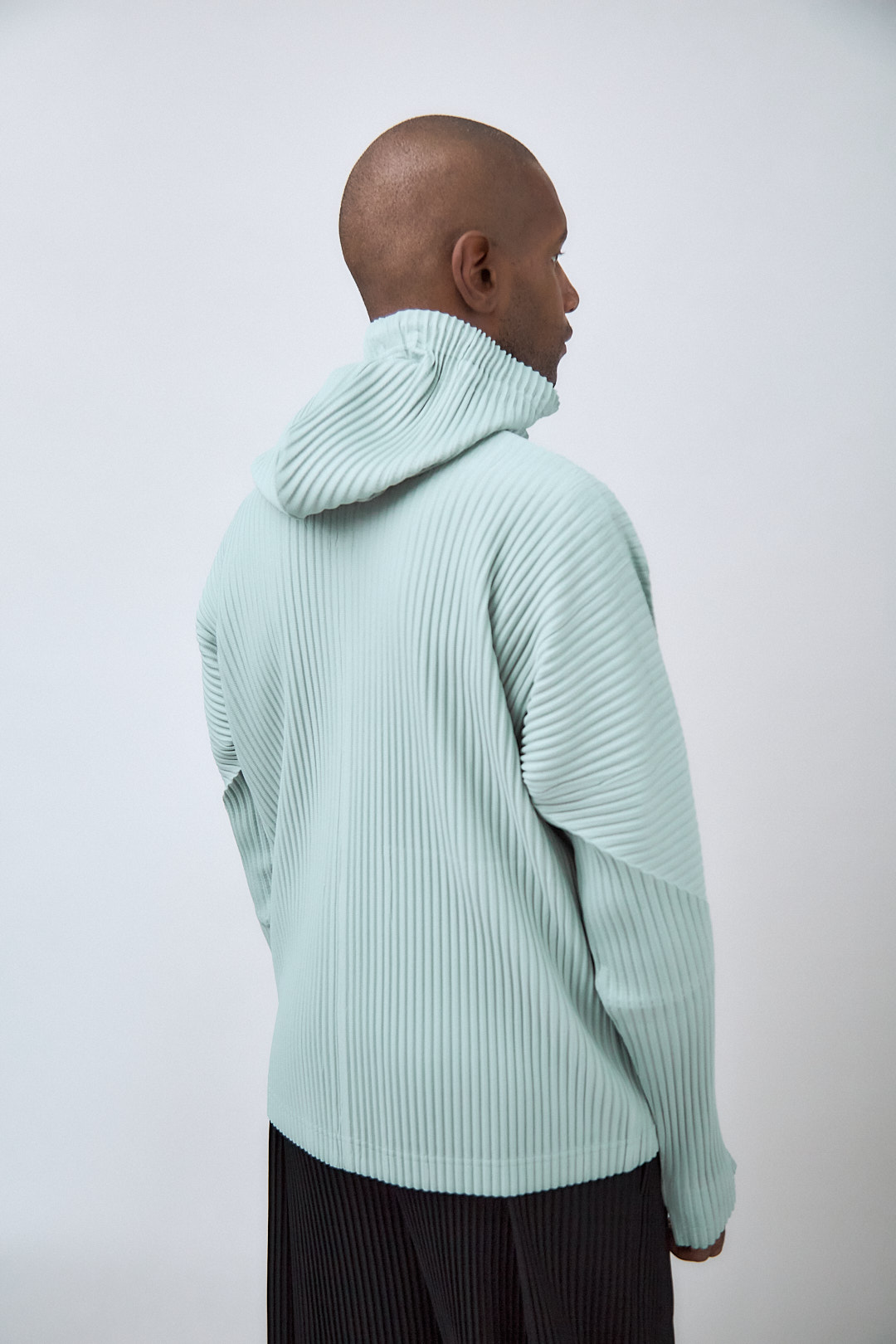 Long-sleeve lightweight garment-pleated hoodie in sericite blue.