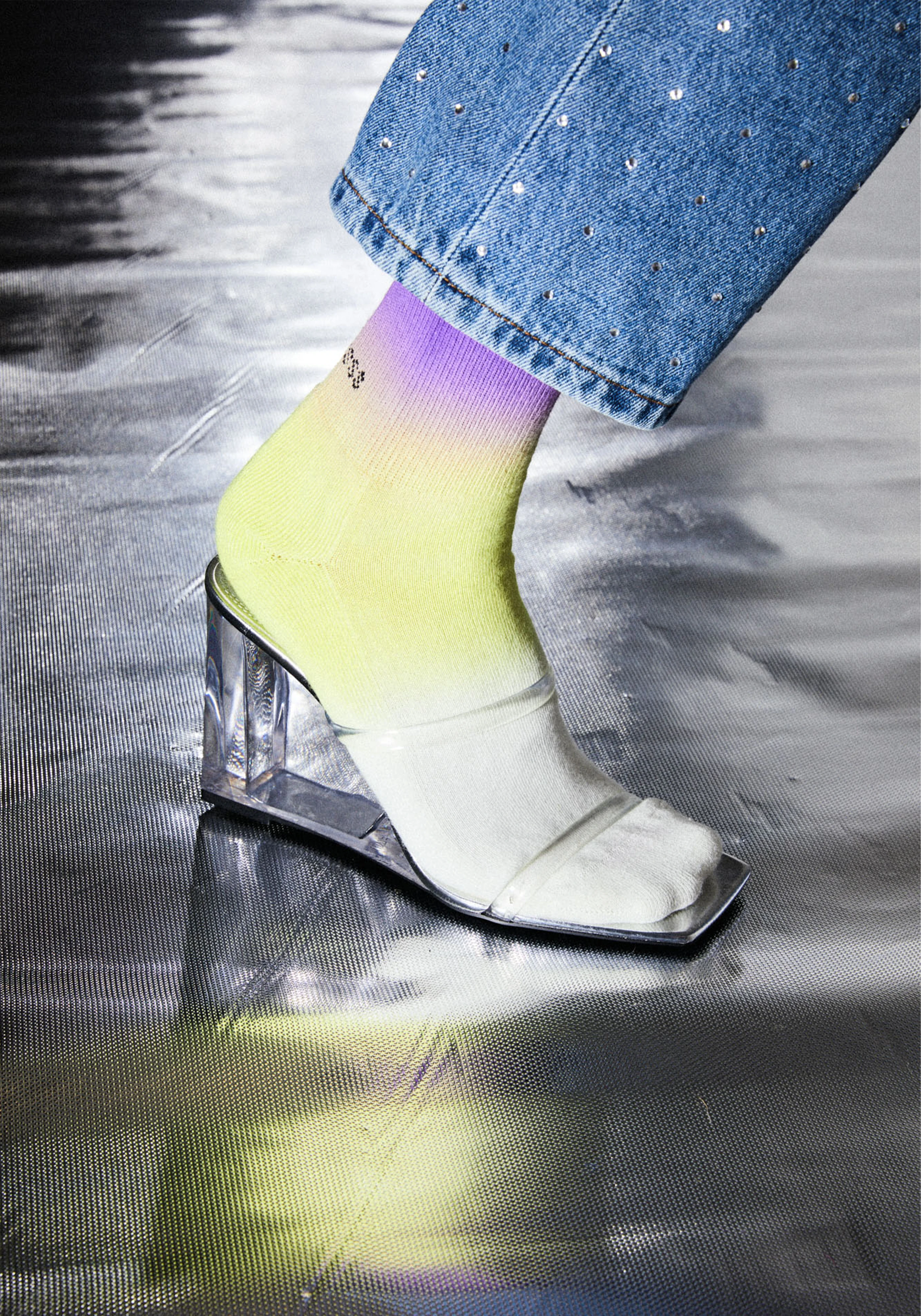 Calf-high knit stretch cotton-and nylon-blend socks in a greadient pattern throughout.