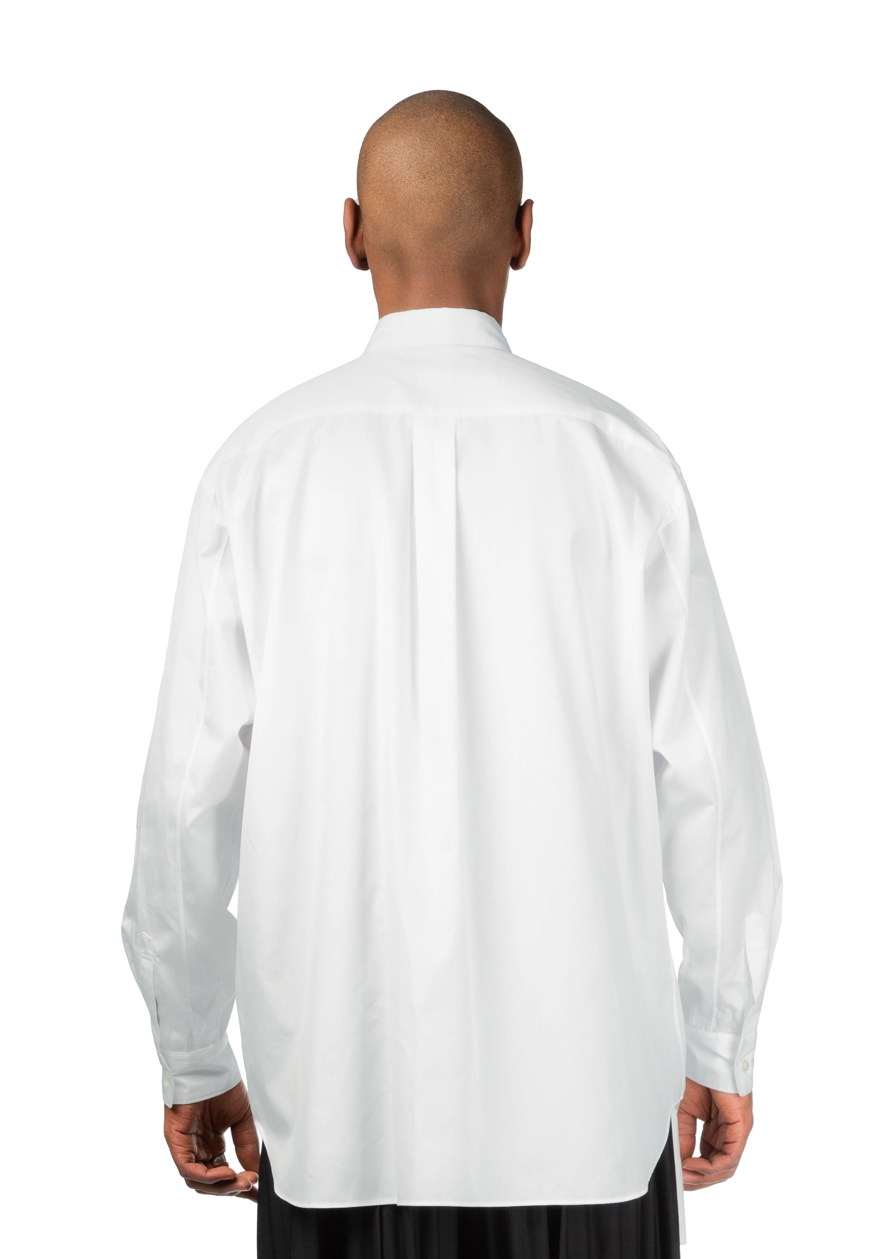 Long-sleeve cotton poplin shirt in white.