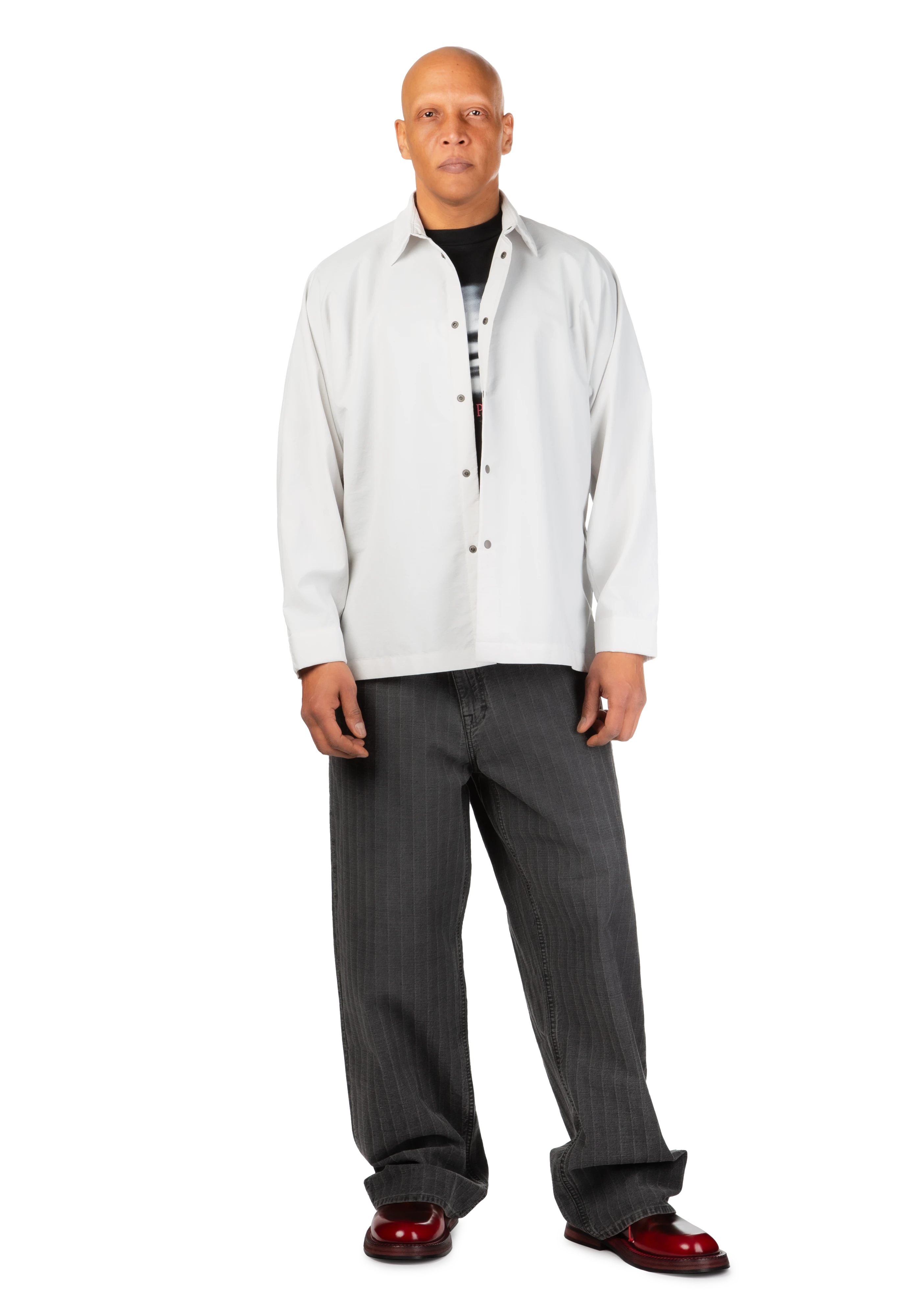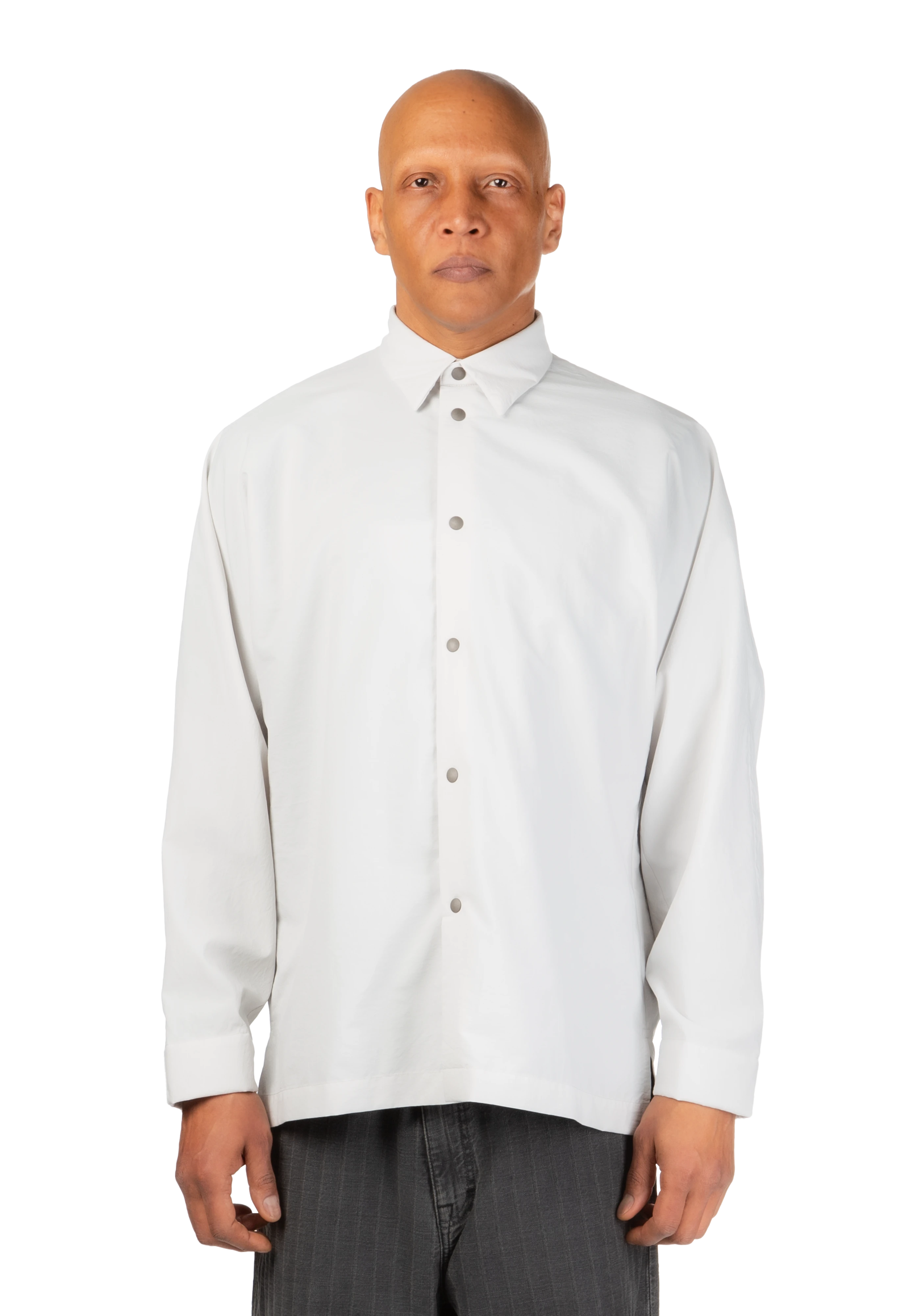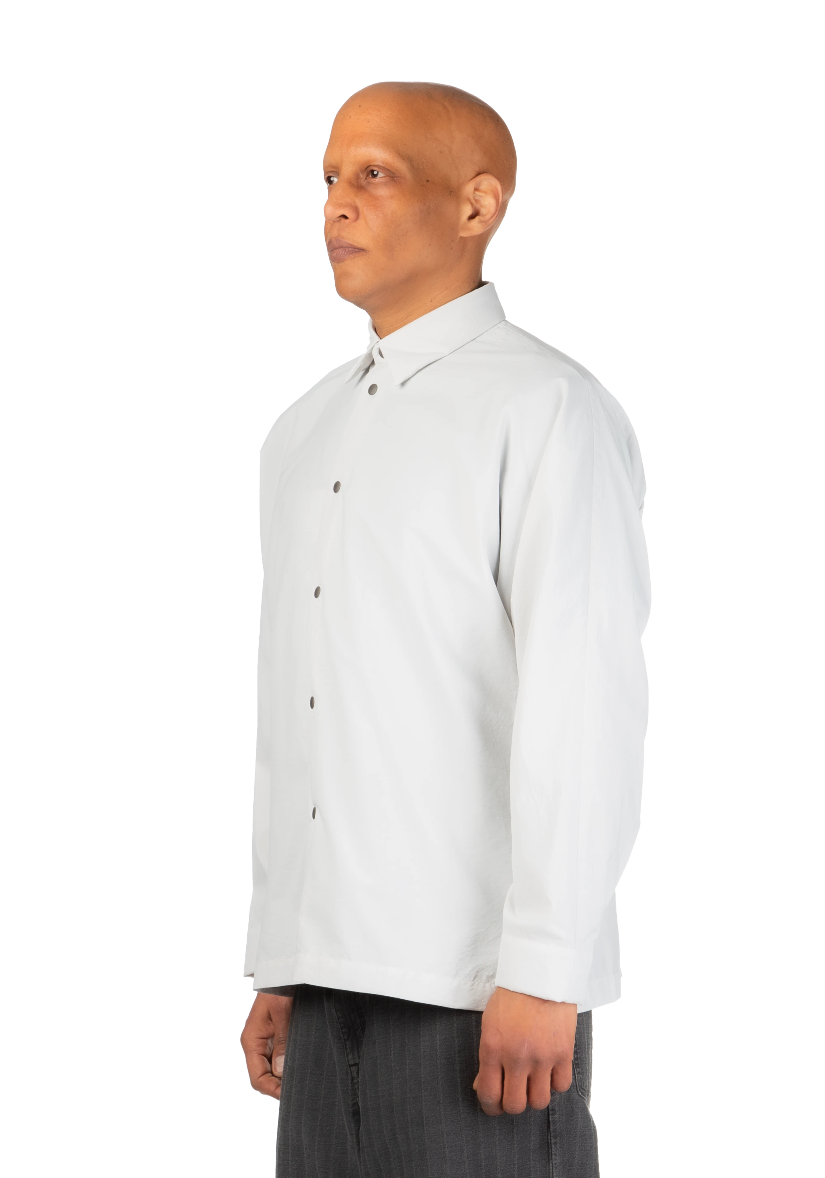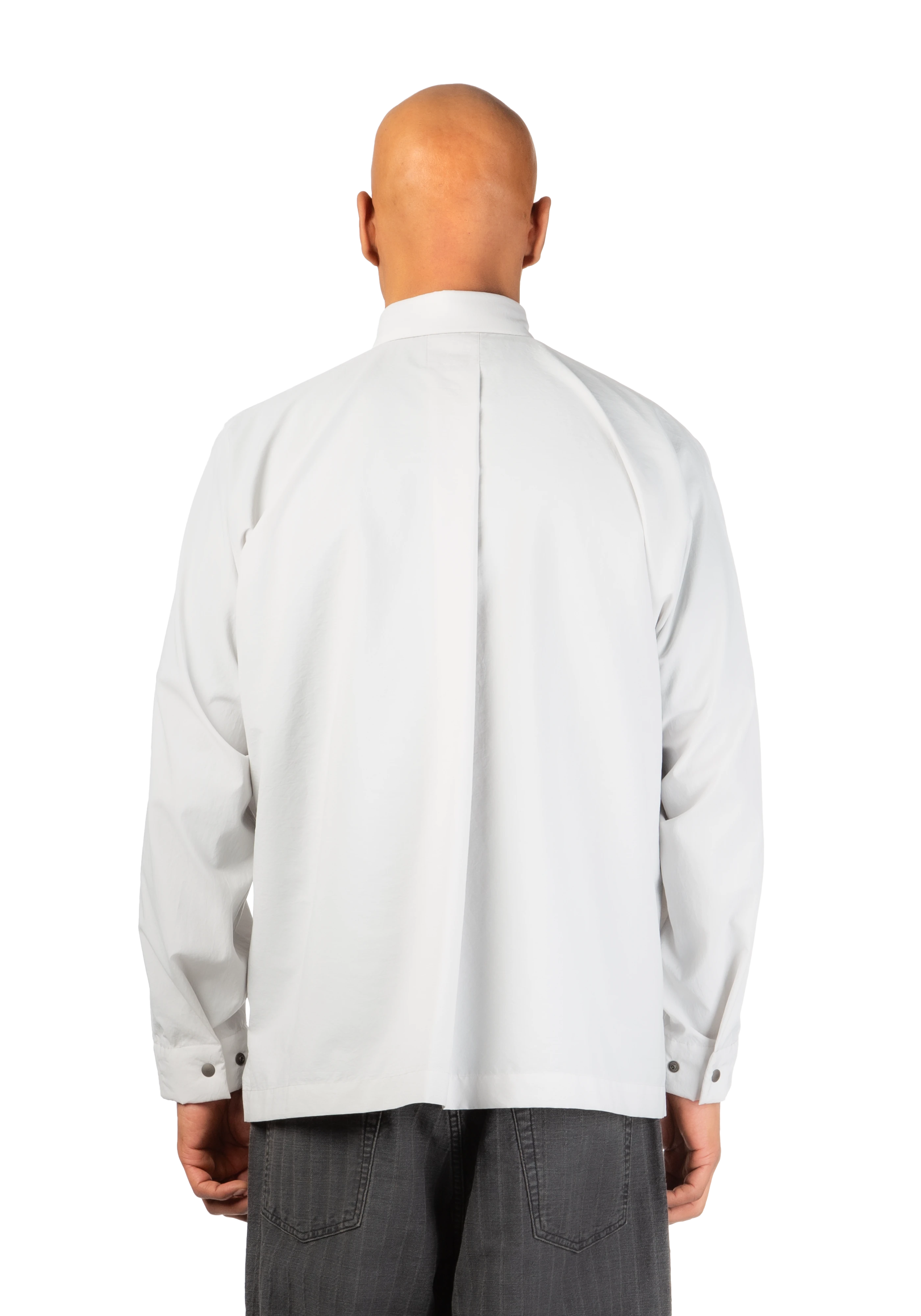 Long-sleeve lightweight plain-woven technical shirt in white.